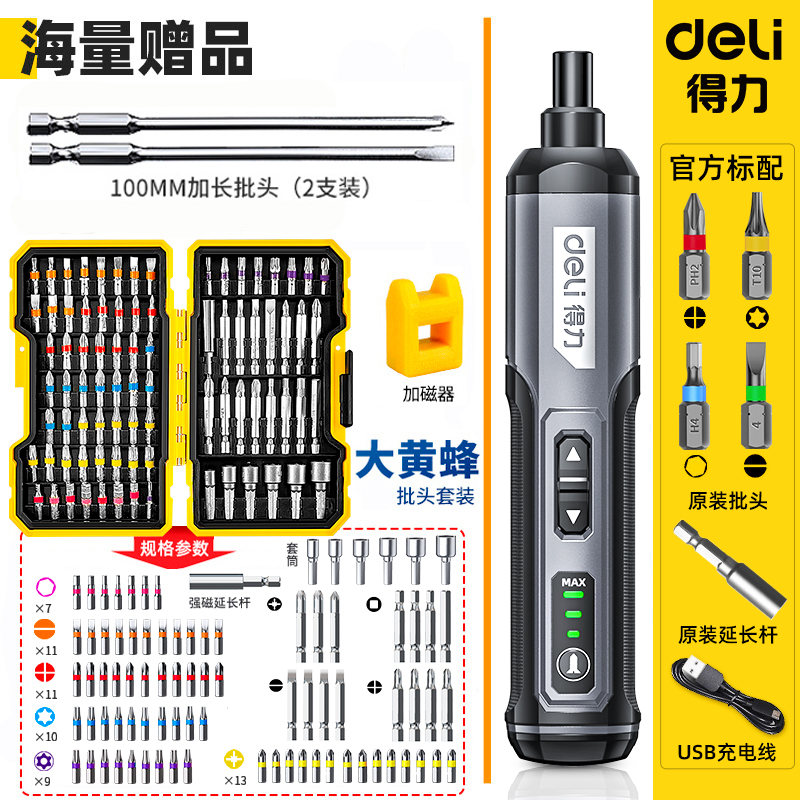 델리 전기 드라이버 충전식 가정용 드라이버 작은 다기능 전기 배치 리튬 배터리 자동 공구 세트