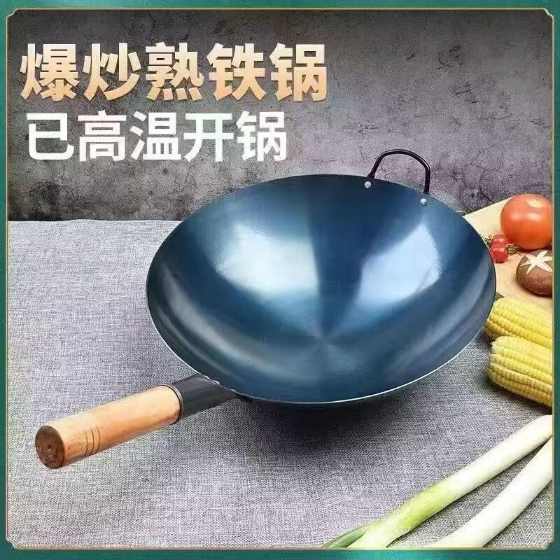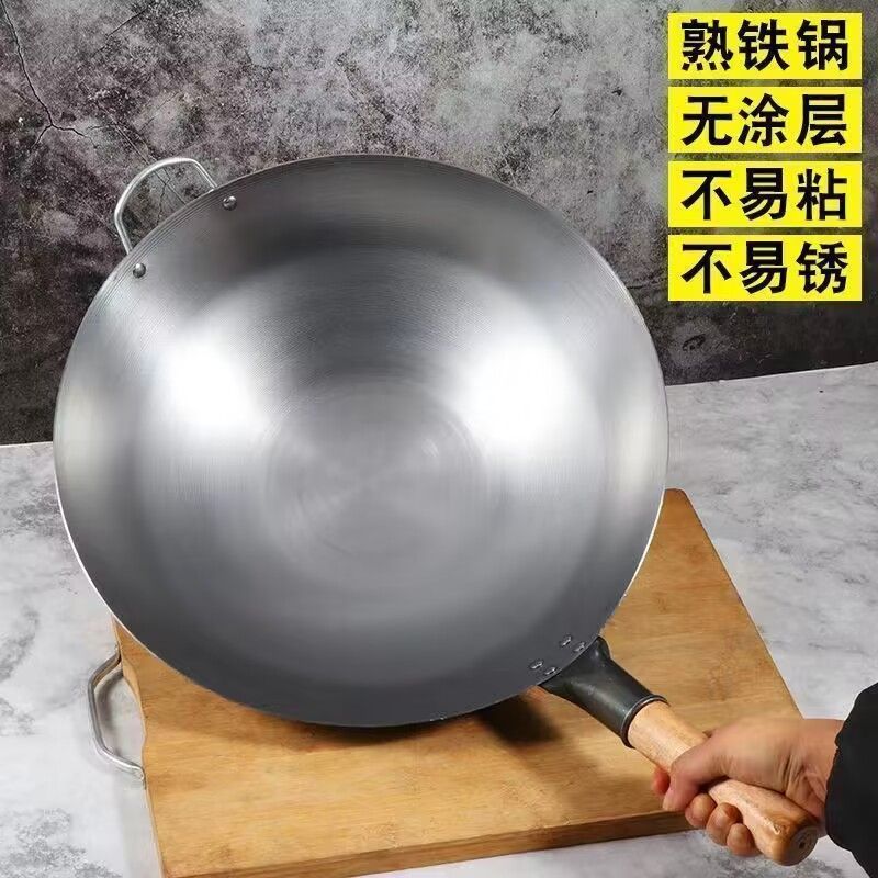 슈퍼 요리사 가스 상업 칭찬 철 냄비 홈 두꺼운 특별한 만 명이 둥근 바닥 냄비.스토어 가기