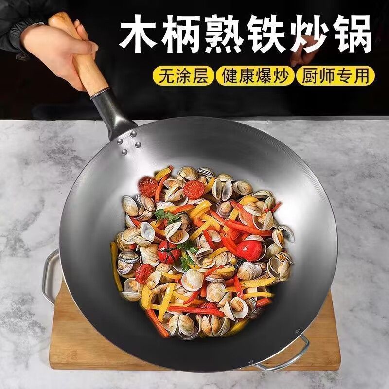 슈퍼 요리사 가스 상업 칭찬 철 냄비 홈 두꺼운 특별한 만 명이 둥근 바닥 냄비.