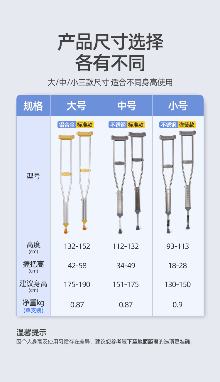 소스 공장 알루미늄 합금 겨드랑이 목발 노인 가족 용 의료 목발 낙하 방지 미끄럼 방지 매트 높이 조절 가능스토어 가기
