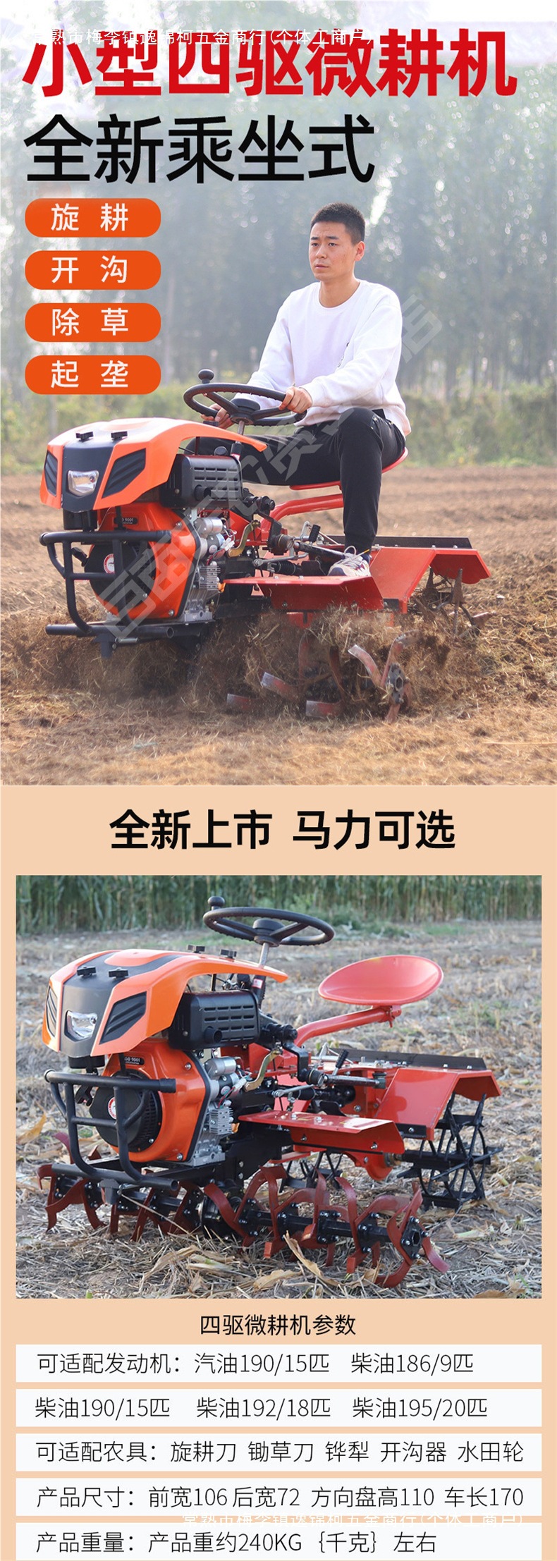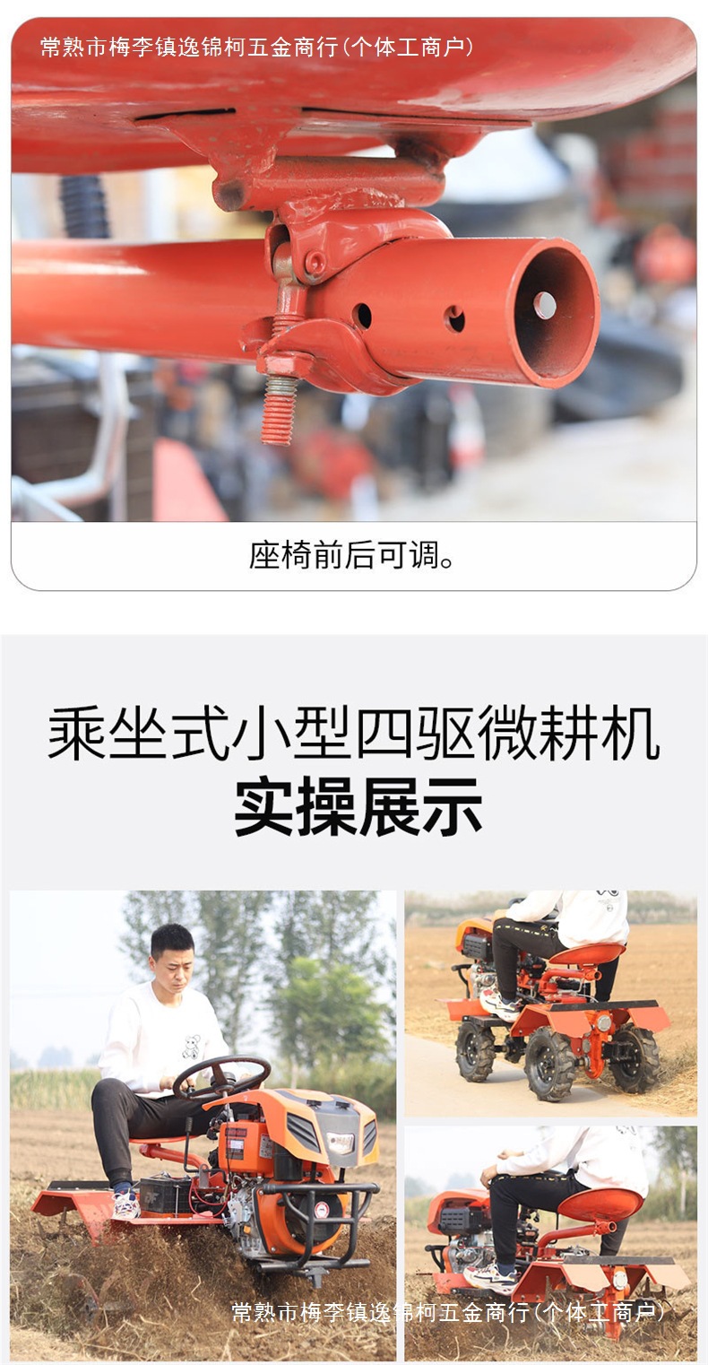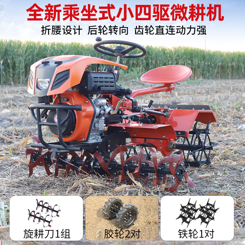 라이드 타입 소형 4 륜 구동 마이크로 틸러 다기능 쟁기, 펄럭임, 풀림 및 제초 디젤 4 륜 로터리 경운기