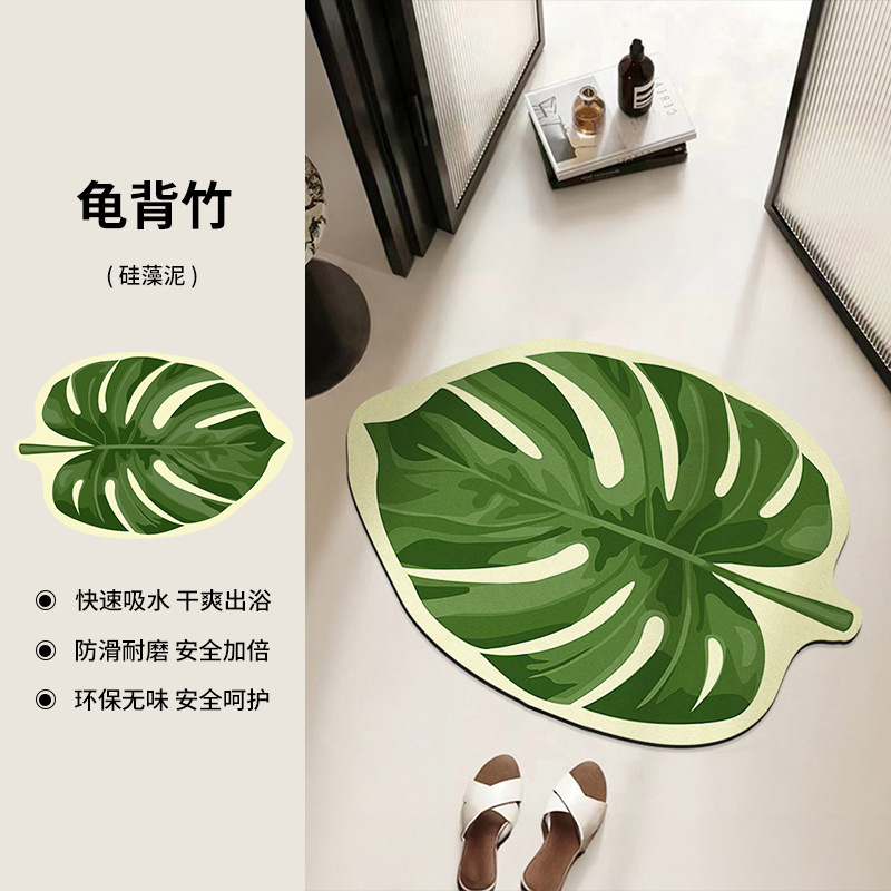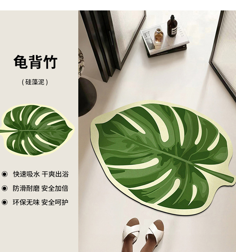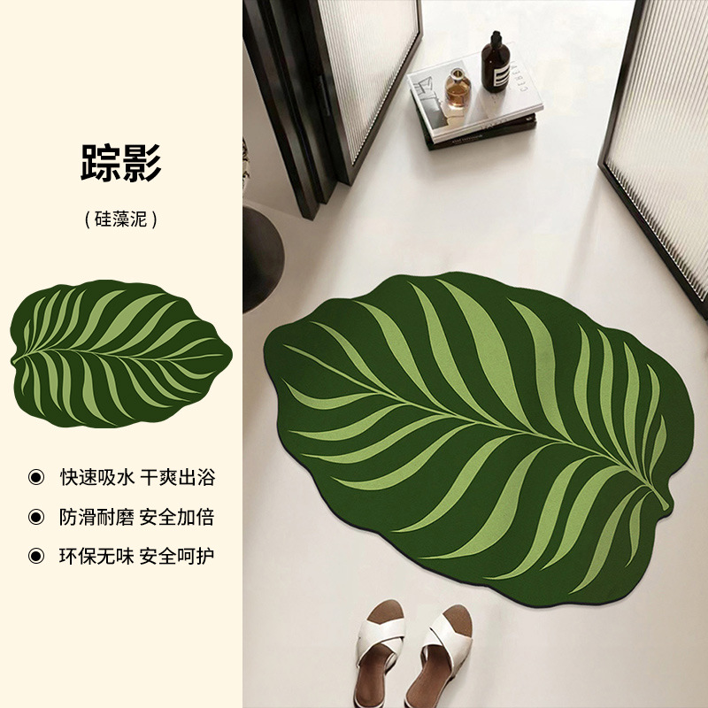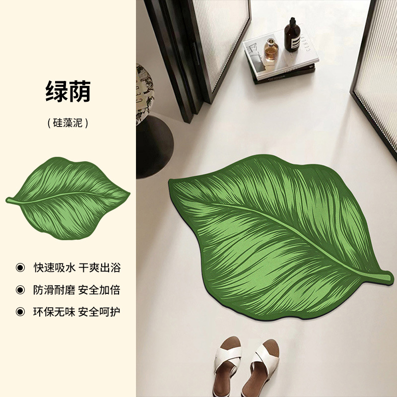 Ins 스타일 녹색 잎 욕실 흡수성 바닥 매트 홈 욕실 미끄럼 방지 발 매트 작은 신선한 미끄럼 방지 규조토 진흙 바닥 매트