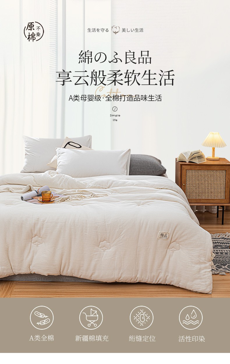 클래스 A 베이비 그레이드 비 염색 원목면 직물 신강 코튼 이불 4 시즌 두껍게 주름진 이불 코어