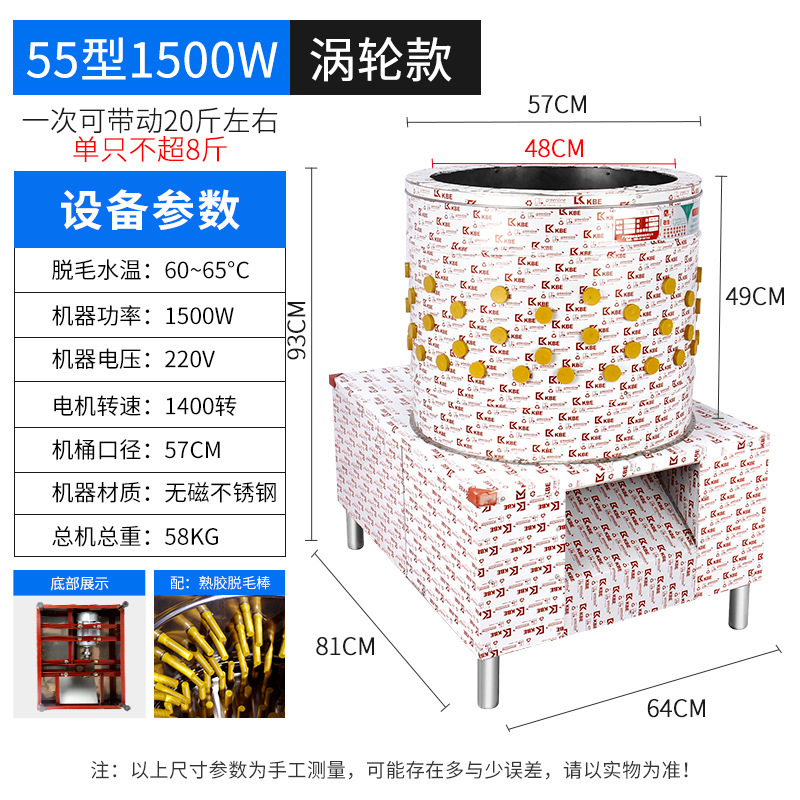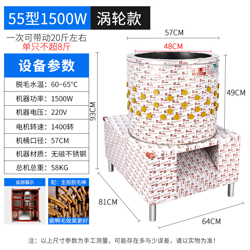 • 55형 1500W [두꺼운 터빈 모델] 생고무 스틱은 닭/오리/우유돼지/비둘기를 제거할 수 있습니다.