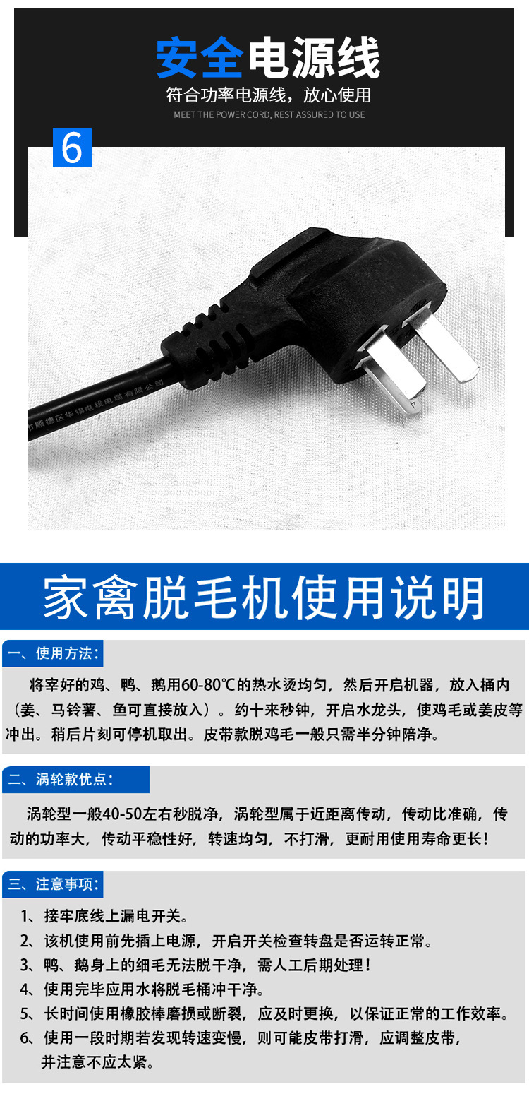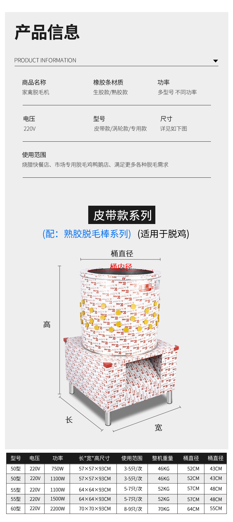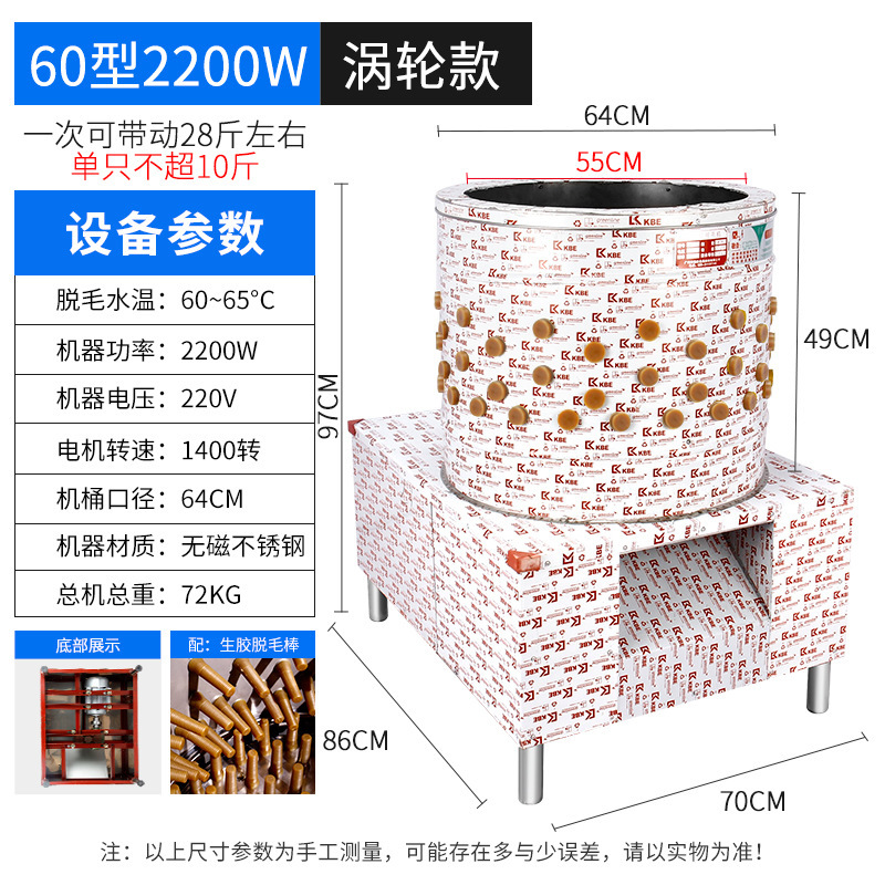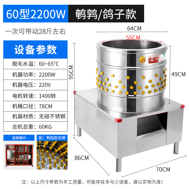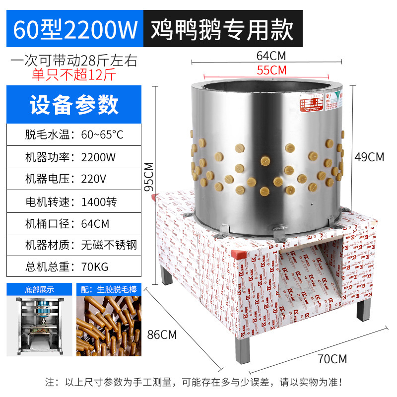 • 60형 2200W [특수 올스틸 모델] 생고무 스틱은 닭, 오리, 거위/우유돼지/비둘기를 제거할 수 있습니다.