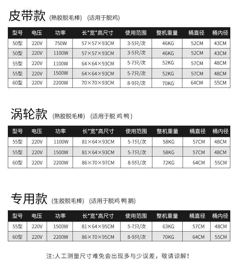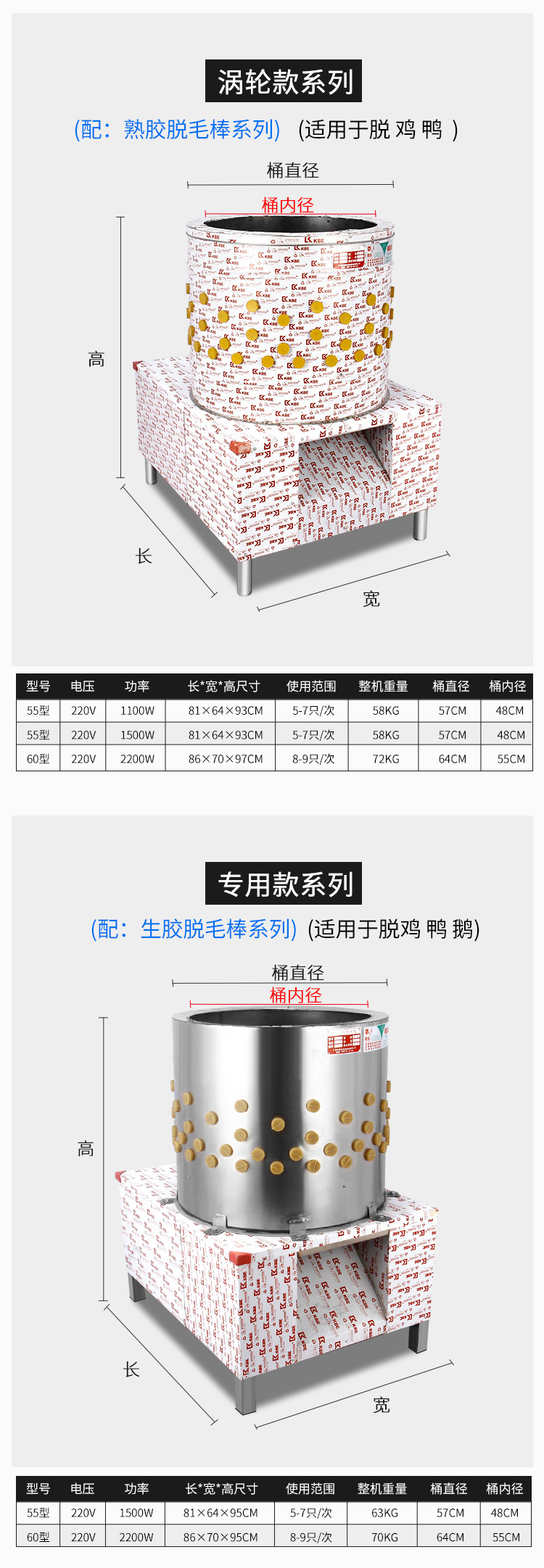 • 55형 1500W [특수 올스틸 모델] 생고무 스틱은 닭, 오리, 거위/우유돼지/비둘기를 제거할 수 있습니다.