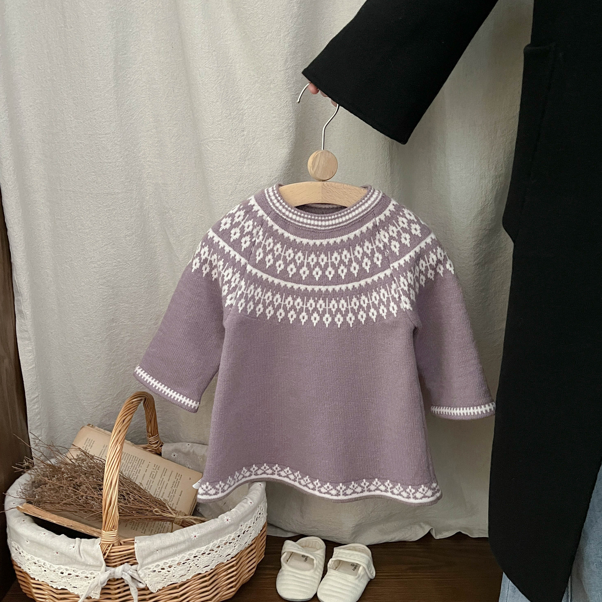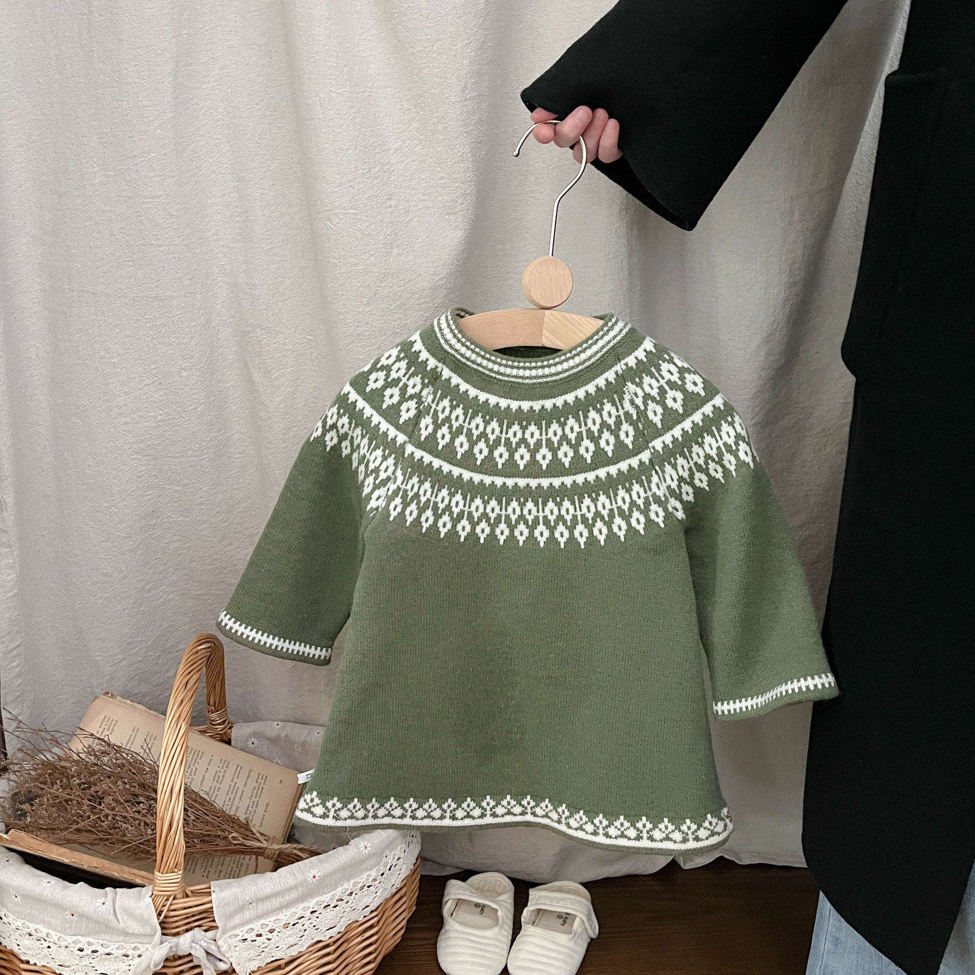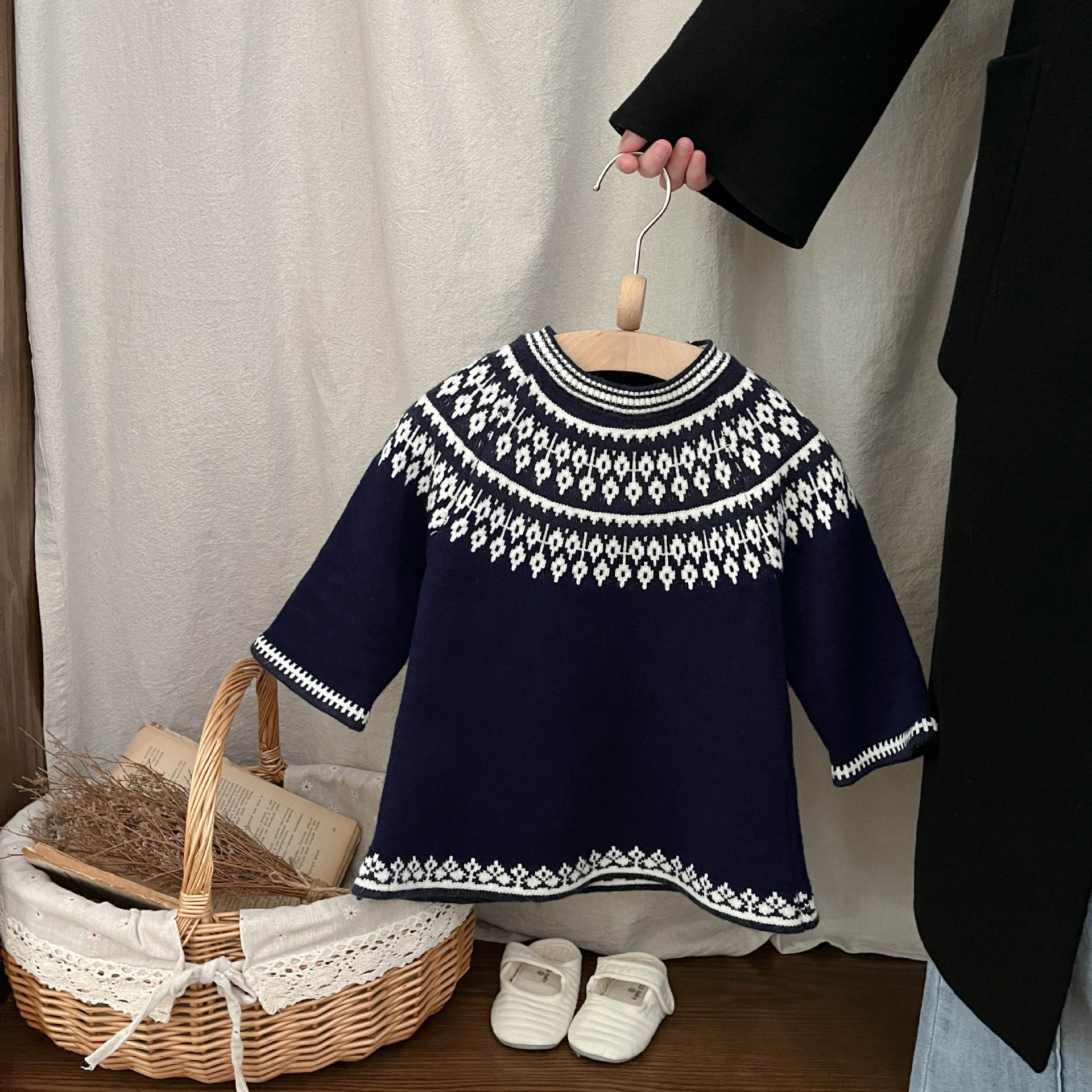 소녀의 봄 니트 공주 원피스 새로운 가을 한국 스타일 아기 서양식 자카드 레트로 긴 소매 울 원피스
