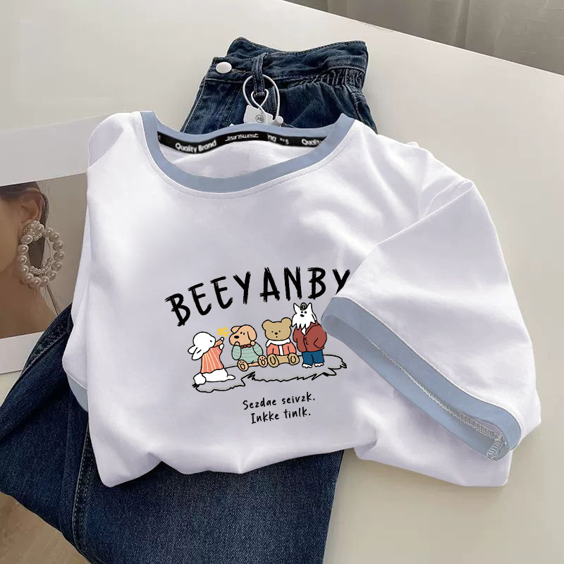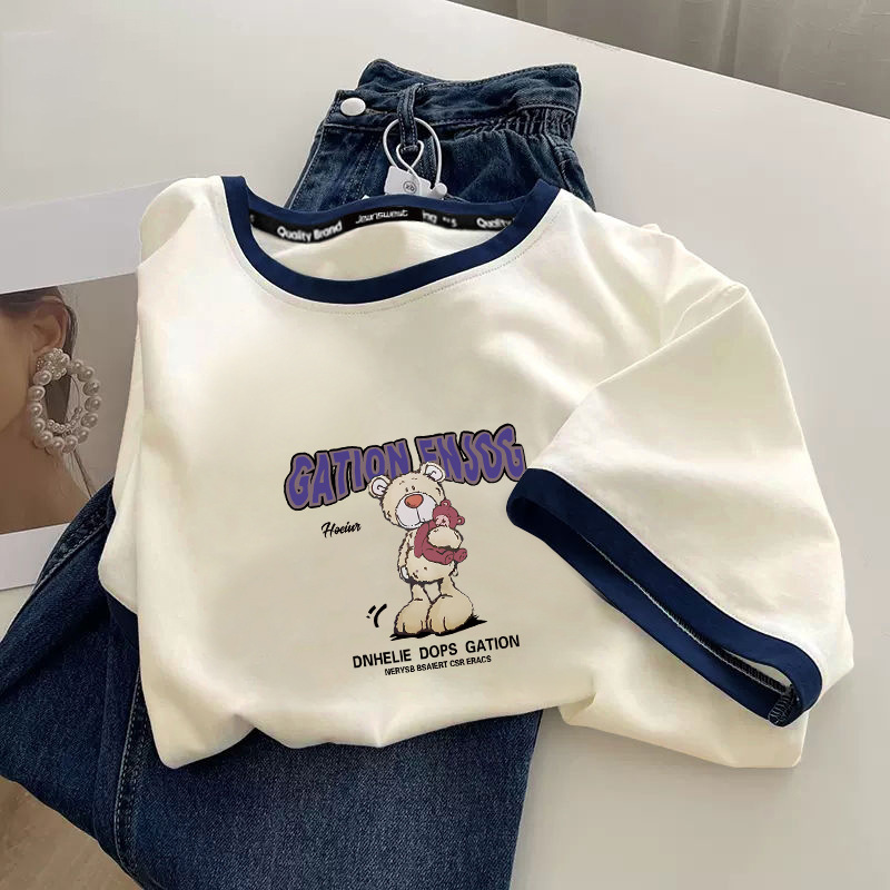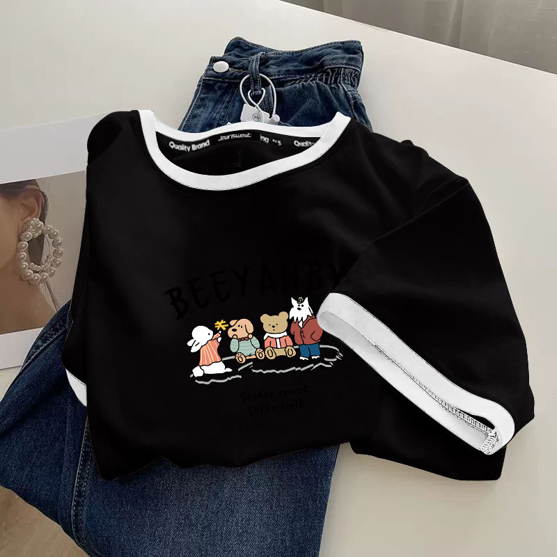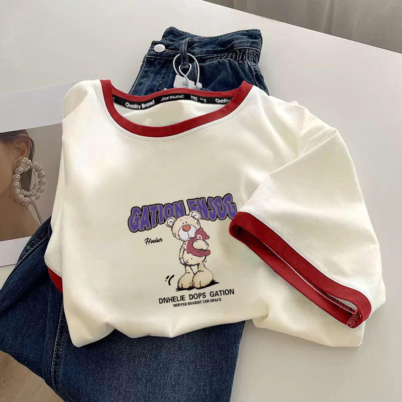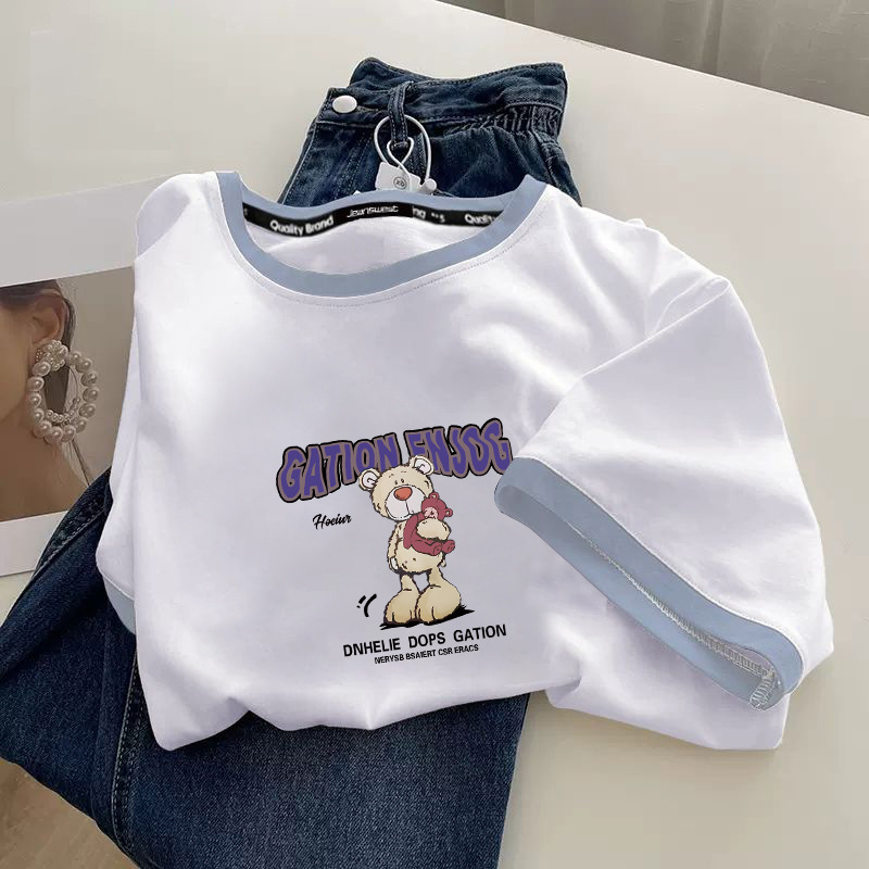어린이 면 대비 티셔츠 여름 새로운 편안한 캐주얼 느슨한 여성 6-12 만화 반팔 탑