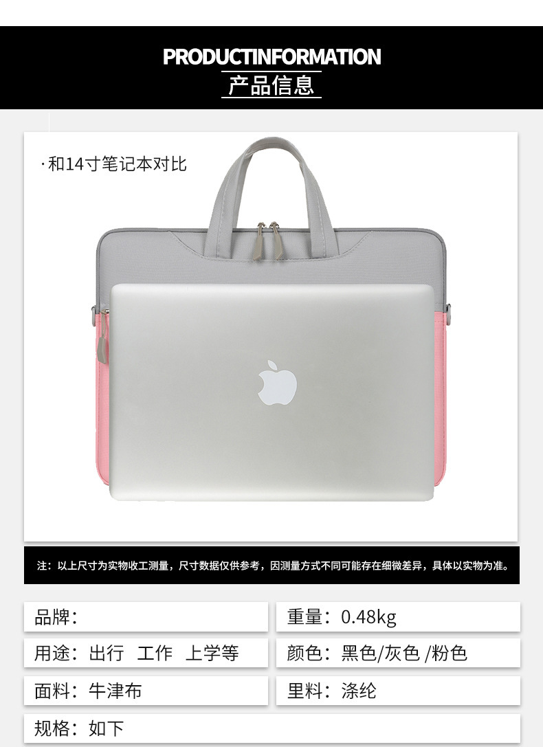 새로운 콘트라스트 컬러 노트북 가방 어깨 가방 레노버 샤오 미 컴퓨터 방수 옥스포드 천 12/15.6