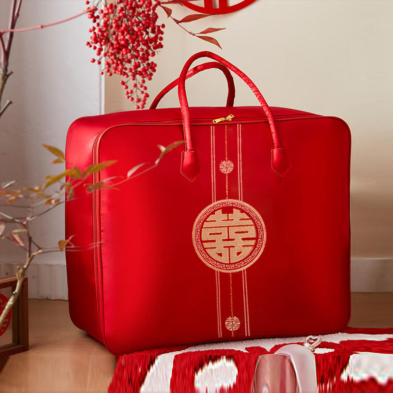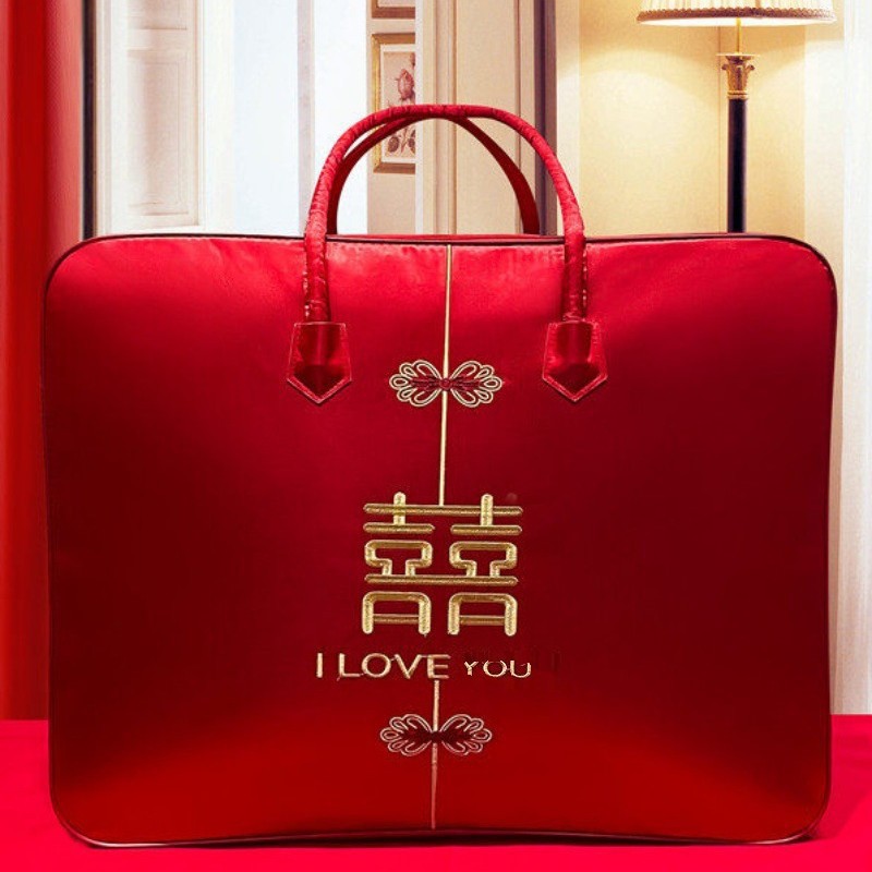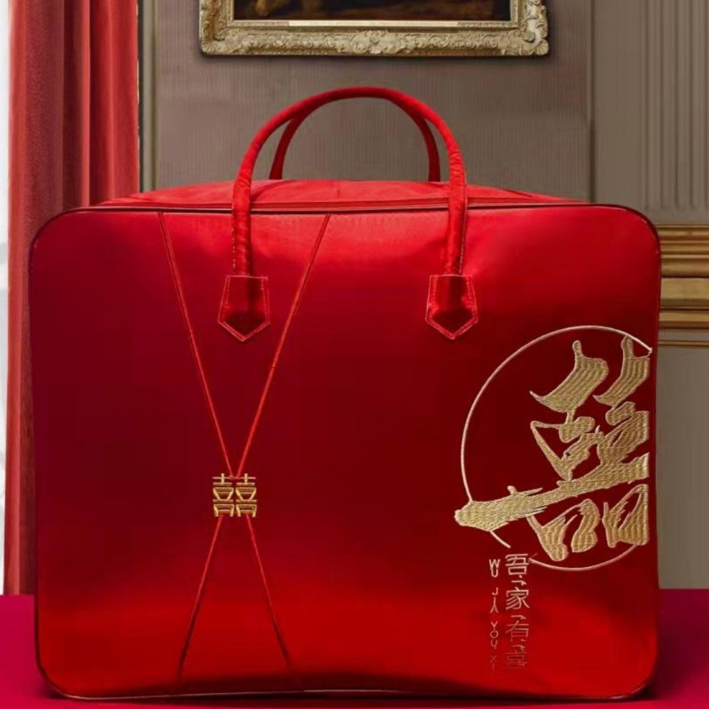 웨딩 4 피스 세트 레드 퀼트 포장 가방 새틴 축제 휴대용 결혼식 동반 타오 치스토어 가기