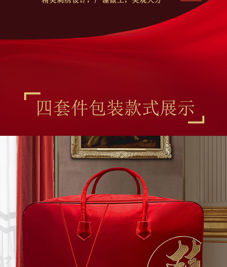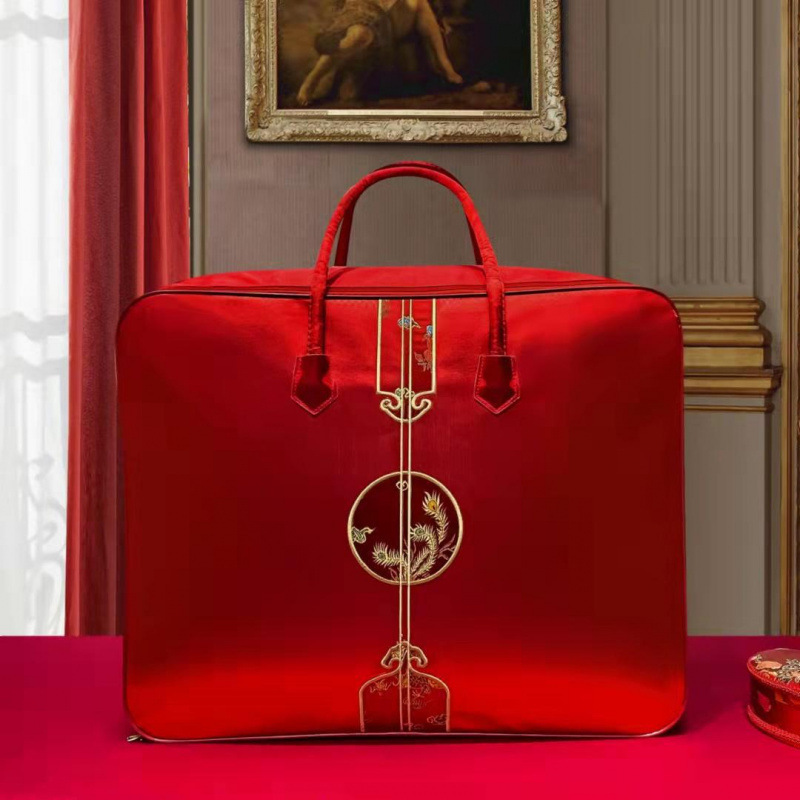 웨딩 4 피스 세트 레드 퀼트 포장 가방 새틴 축제 휴대용 결혼식 동반 타오 치