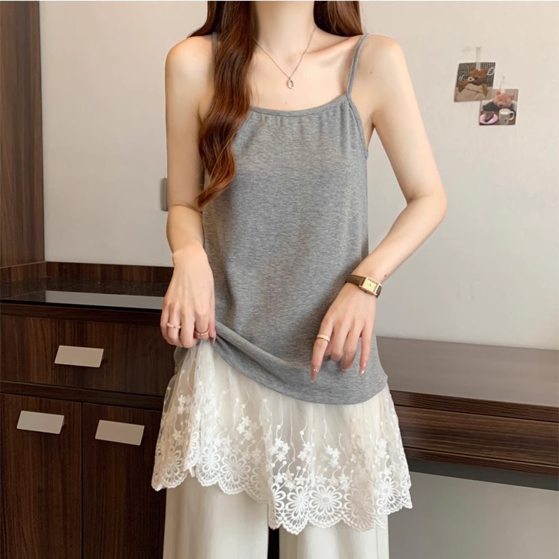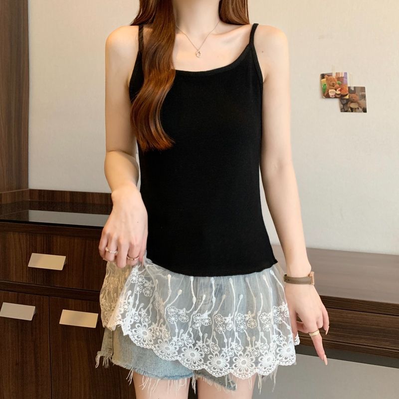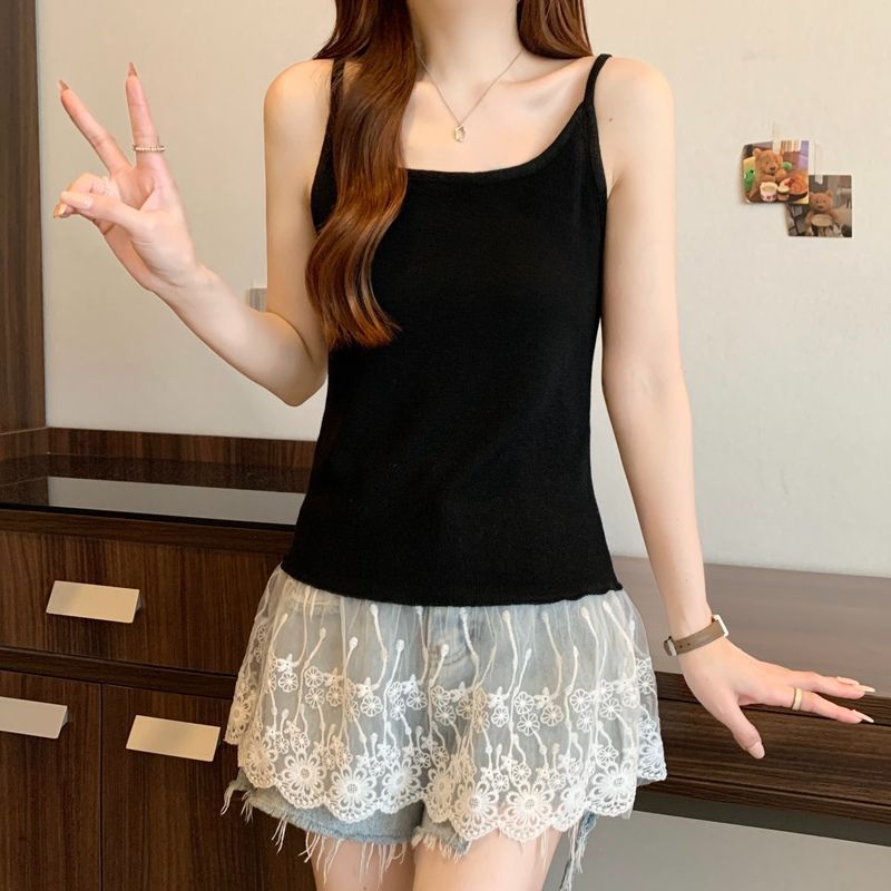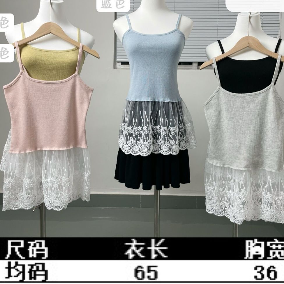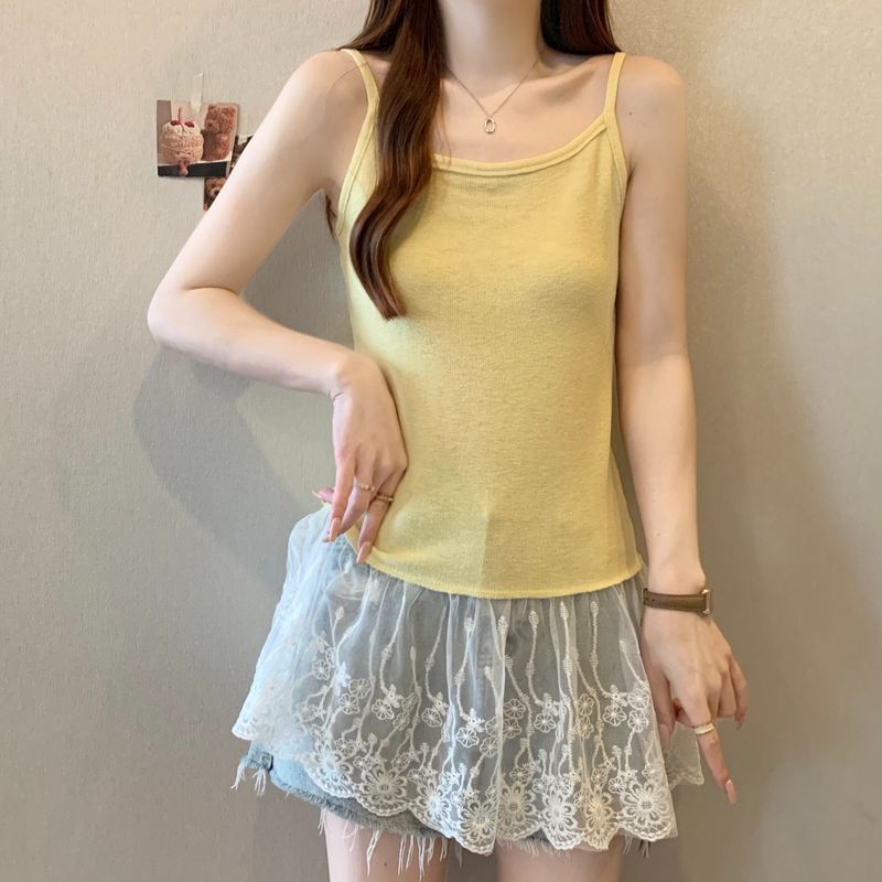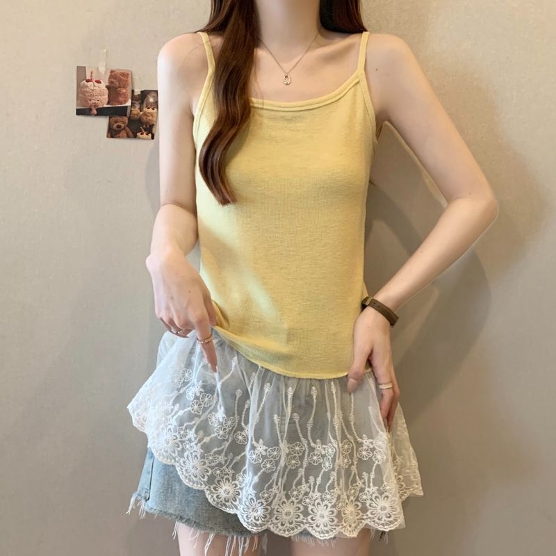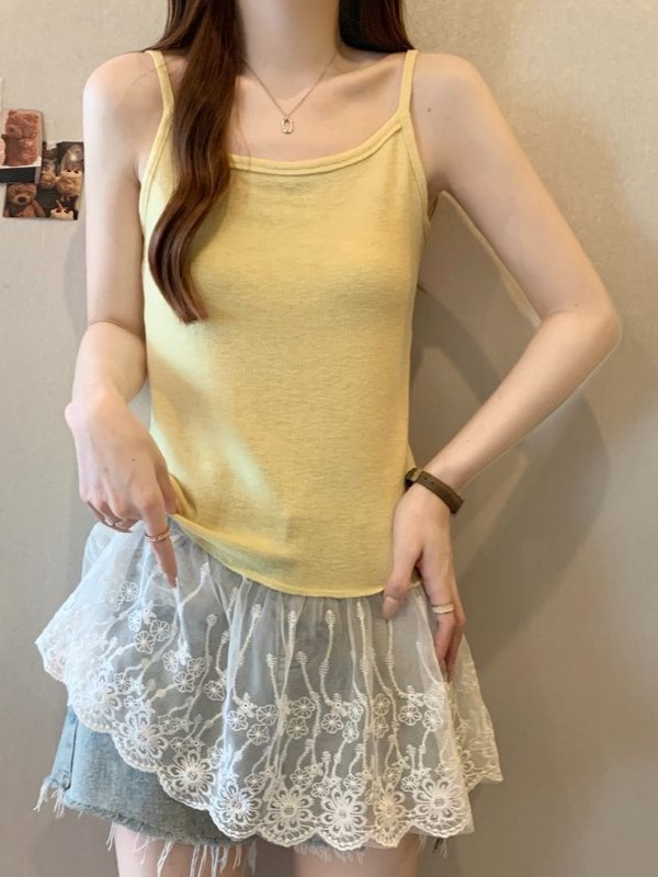 거위 노란색 레이스 카미솔 여성 아우터 착용 2025 년 봄/여름 플러스 사이즈 통통녀 슬림 내베이스 탑