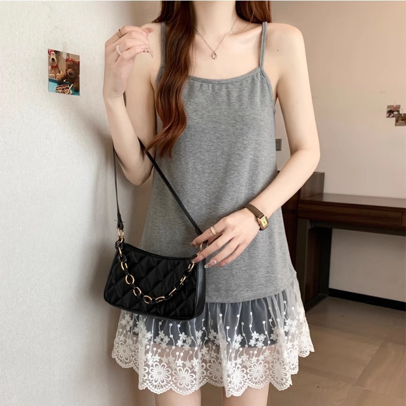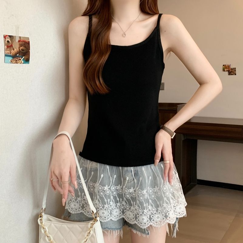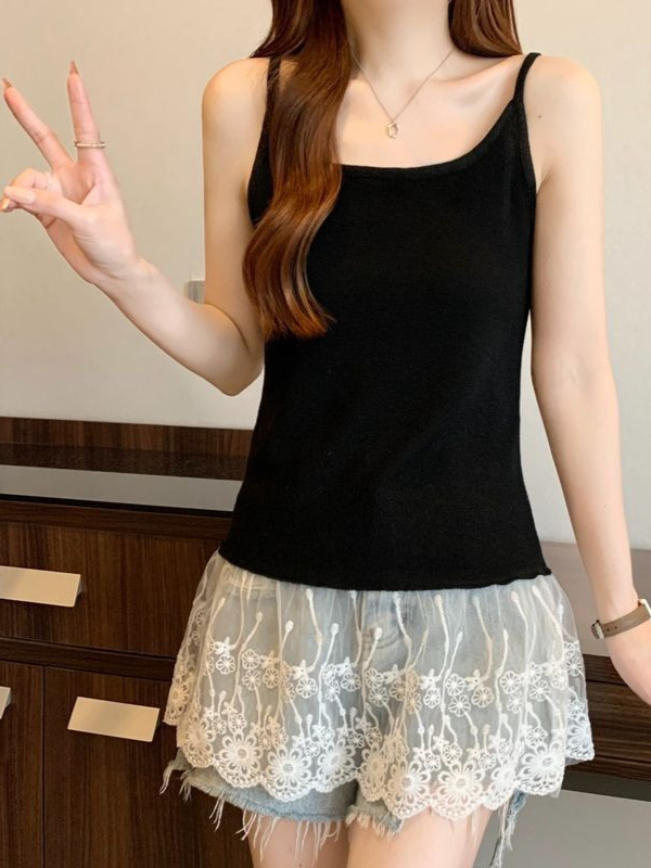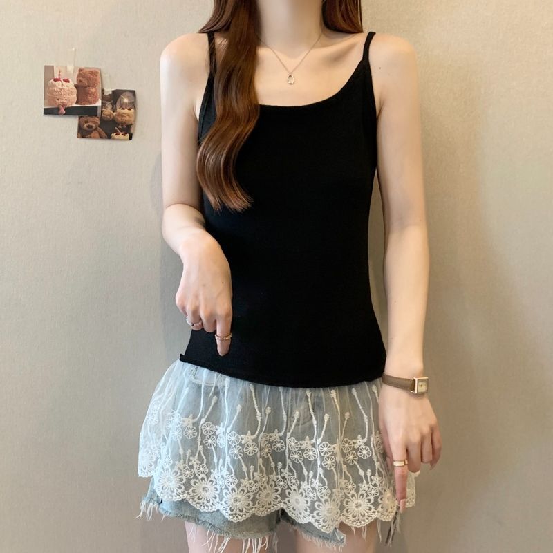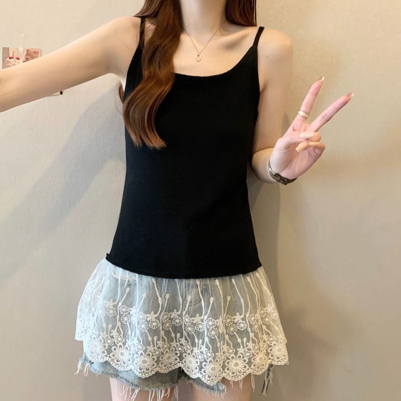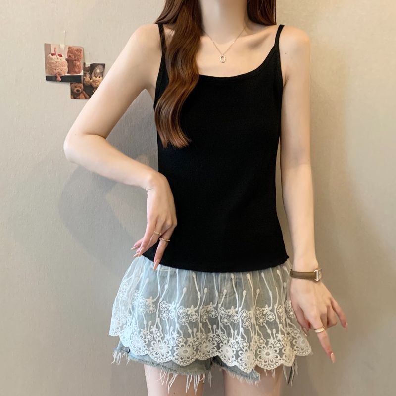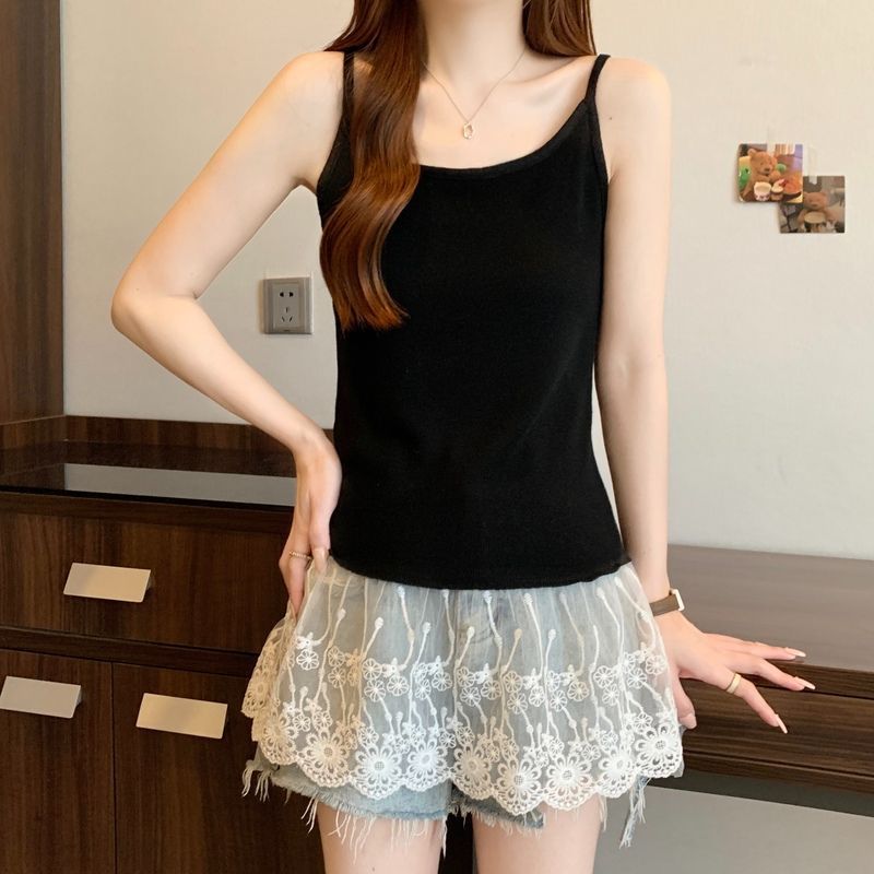 거위 노란색 레이스 카미솔 여성 아우터 착용 2025 년 봄/여름 플러스 사이즈 통통녀 슬림 내베이스 탑