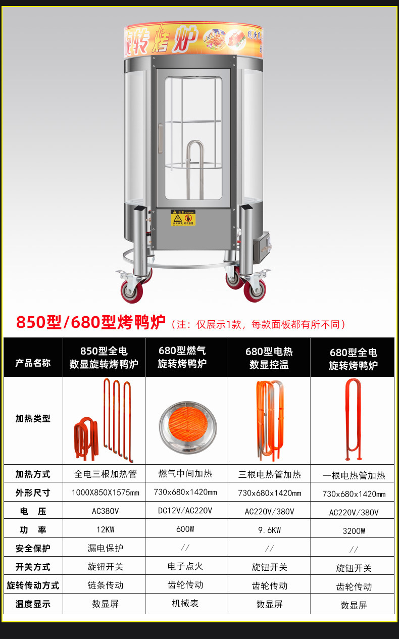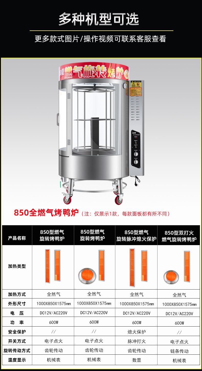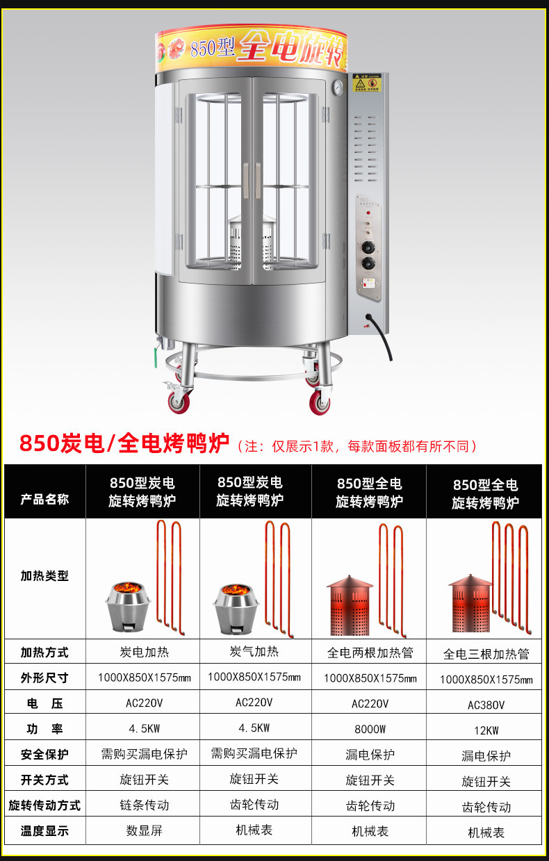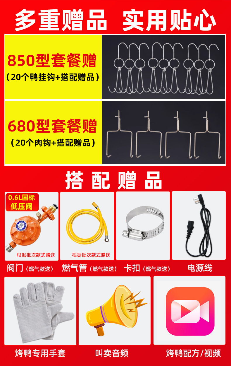 850 로스트 오리 스토브 상업용 가스 전기 로스팅 특수 숯 로스트 생선 구이 거위 로스트 오리 스토브 자동 로터리 680스토어 가기