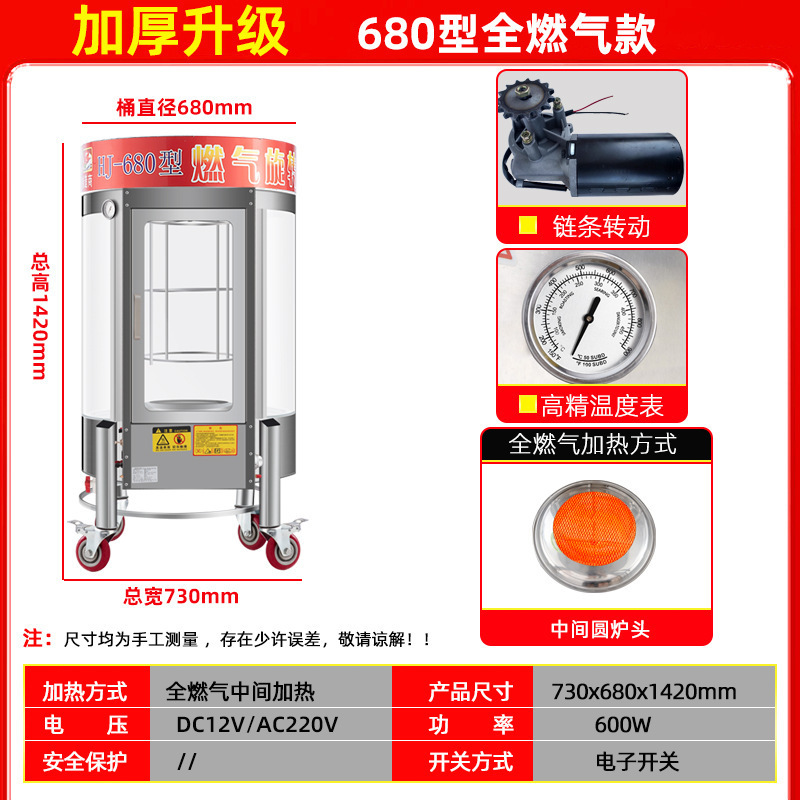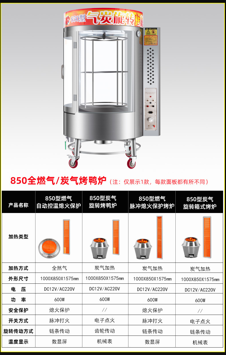 850 로스트 오리 스토브 상업용 가스 전기 로스팅 특수 숯 로스트 생선 구이 거위 로스트 오리 스토브 자동 로터리 680