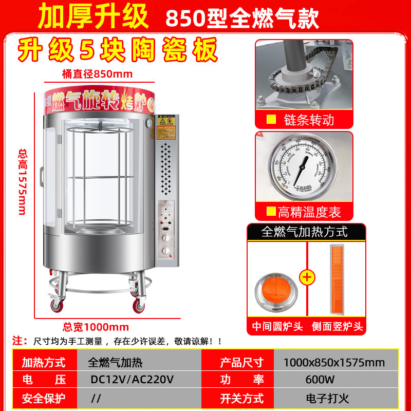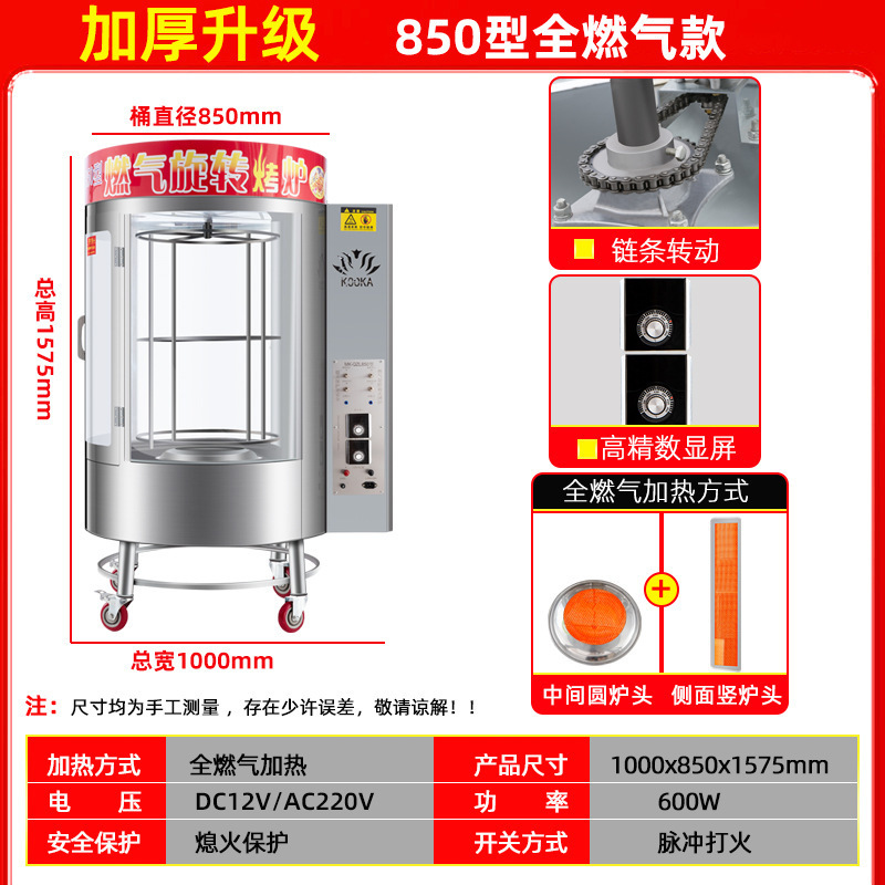 • 850 [풀 가스] 업그레이드 모델 - 중앙 원형 버너 (전자 점화 + 체인 구동 +