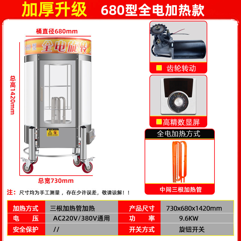 • 680 [풀 전기] 업그레이드 모델 - 중앙에 3개의 전기 가열 튜브(디지털 디스플레이 온도 제어)