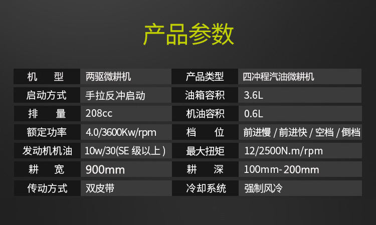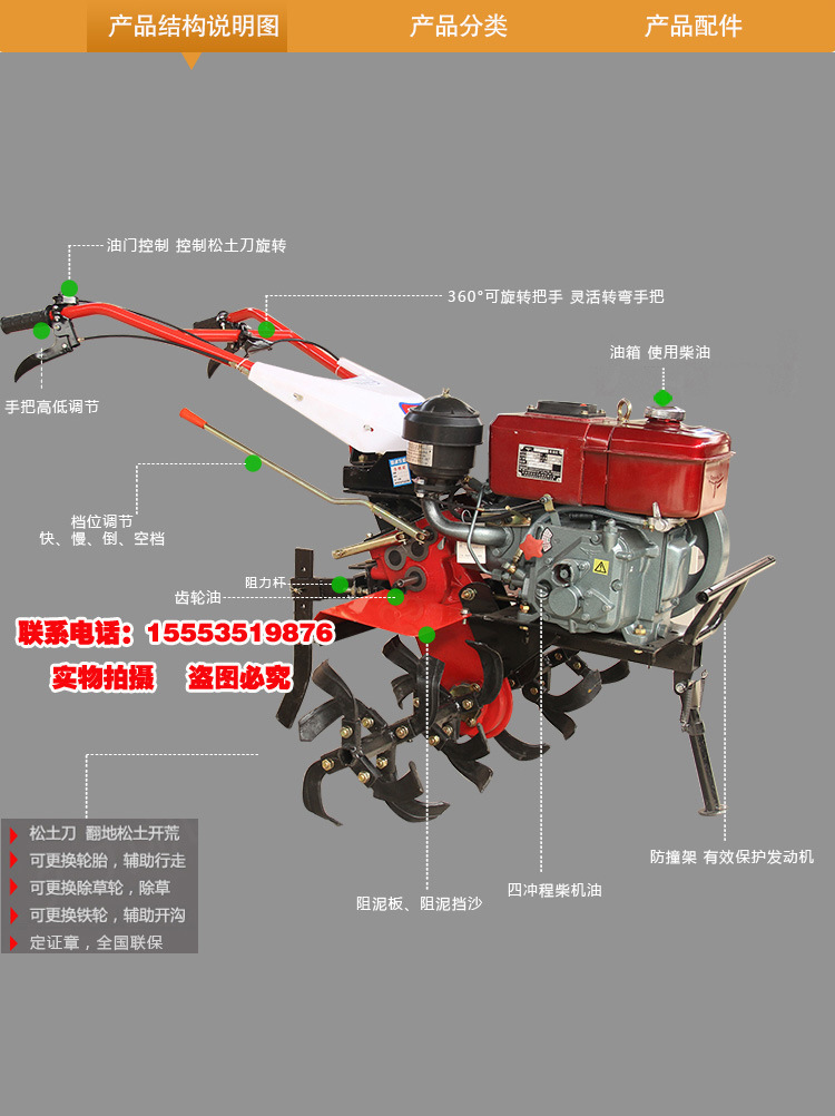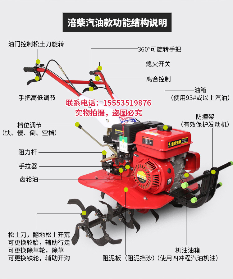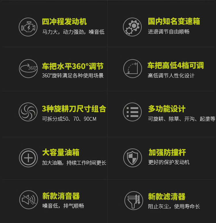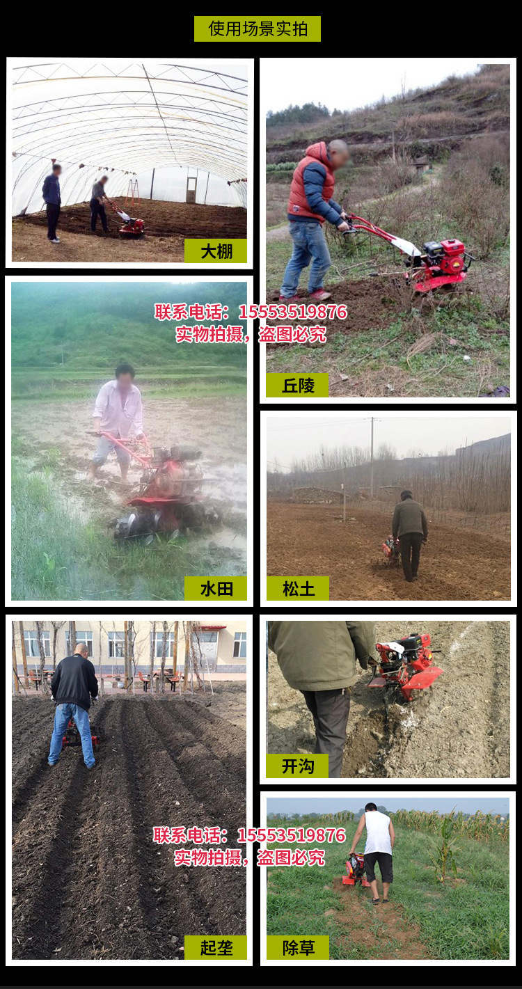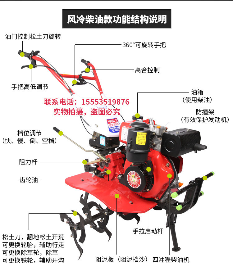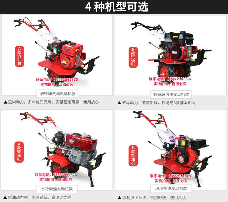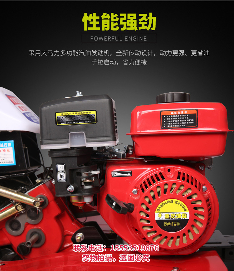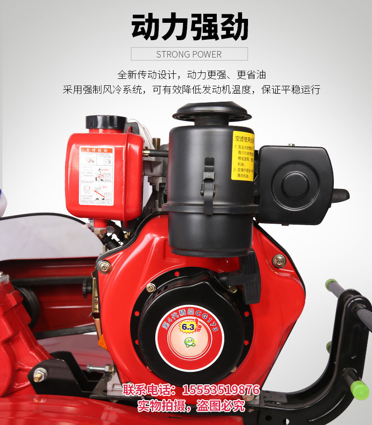 • 공냉식 호스트 + 회전 경운기 + 고무 바퀴 + 도랑 쟁기