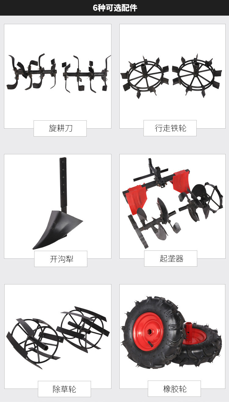 • 푸차이 본체 + 회전 경운기 + 고무 바퀴 + 철 바퀴 + 쟁기