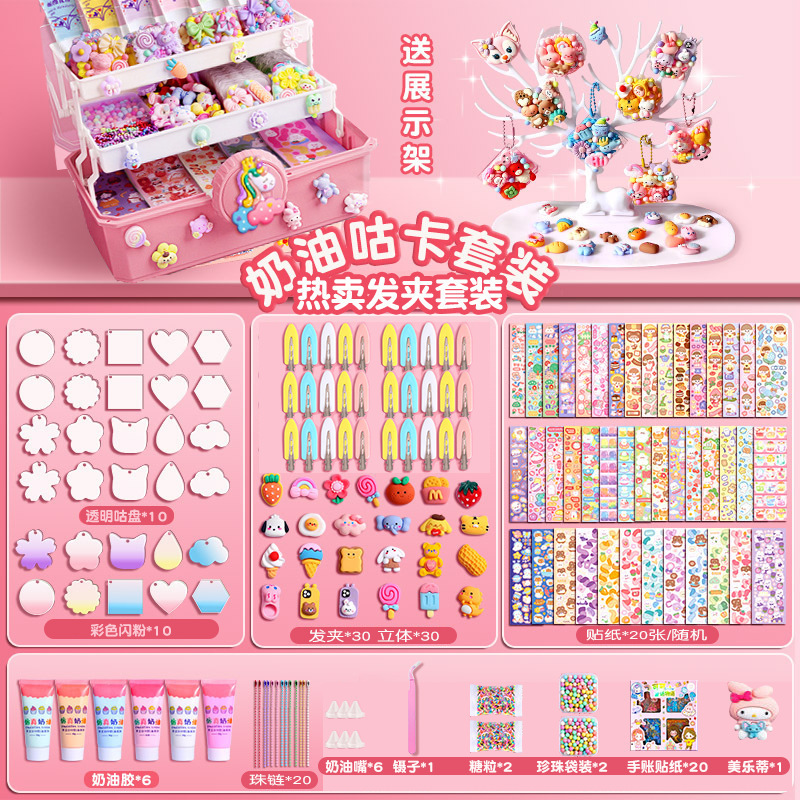 • 크림 글루 머리핀 세트(귀여운 보관함 포함)