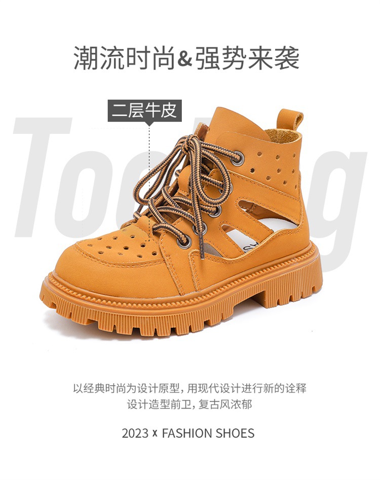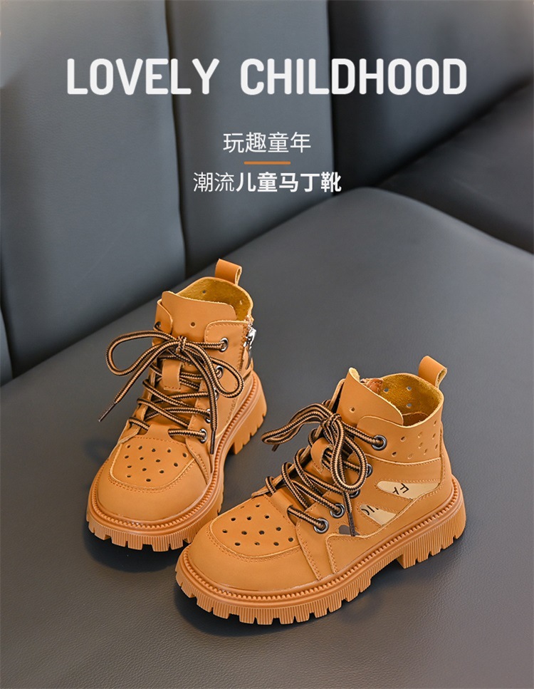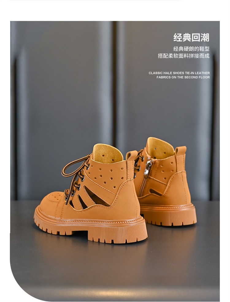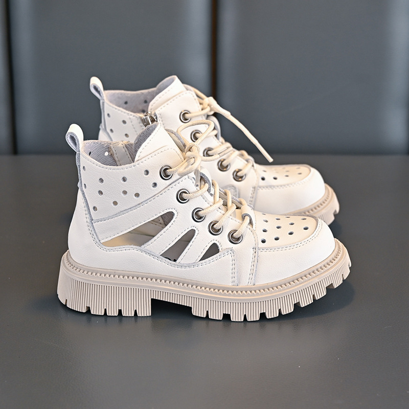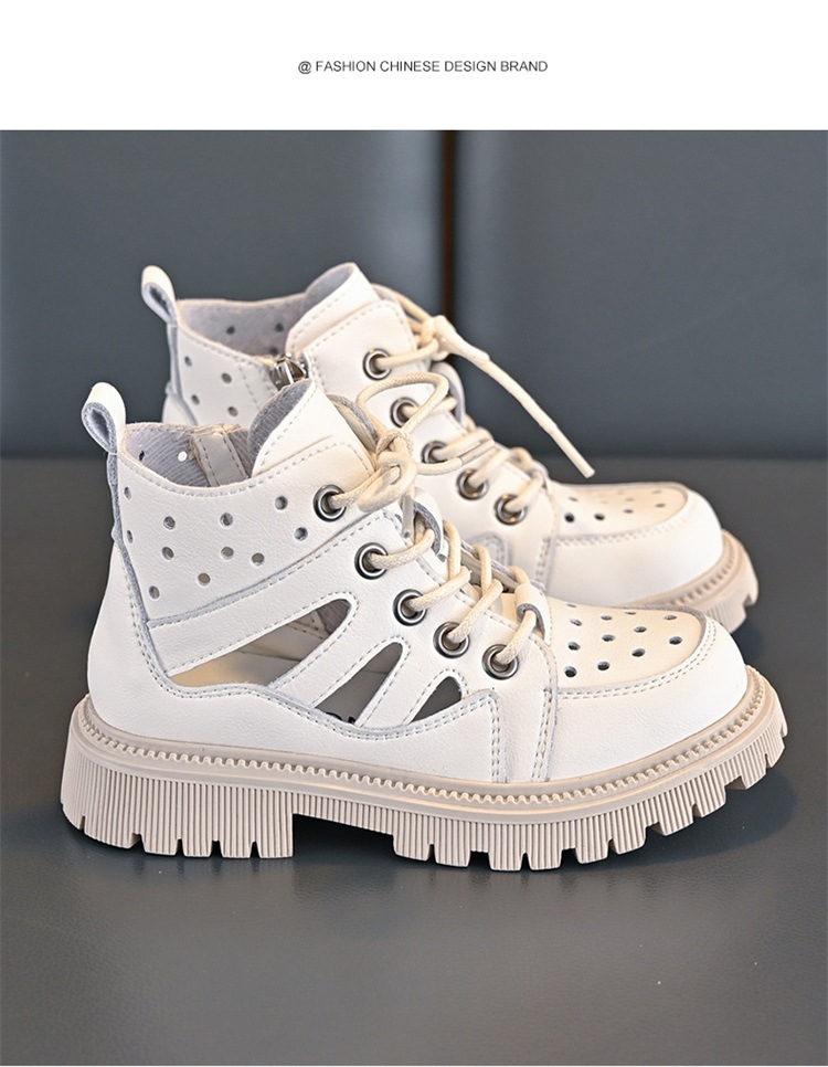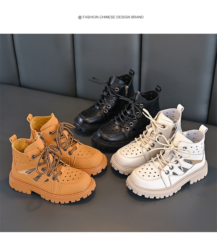 걸스 마틴 부츠 2025 새로운 도착 영국 스타일 중공 어린이 가죽 부츠 소년 가죽 부츠
