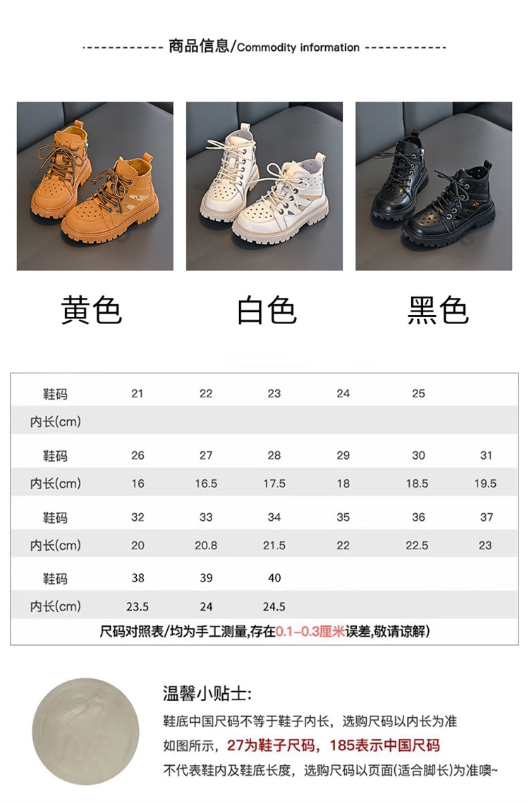 걸스 마틴 부츠 2025 새로운 도착 영국 스타일 중공 어린이 가죽 부츠 소년 가죽 부츠스토어 가기