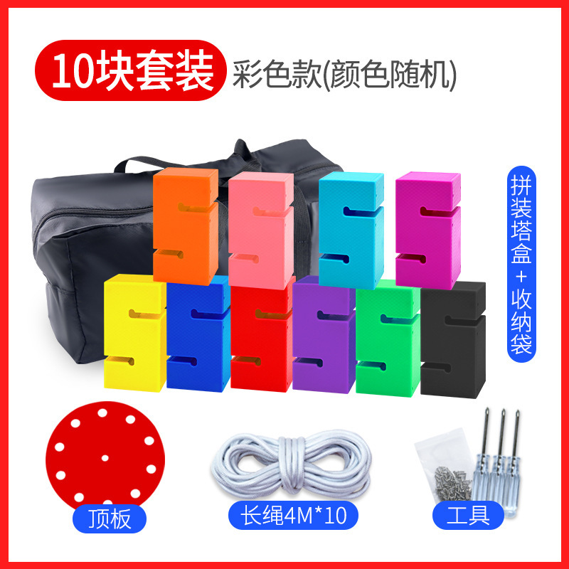 • 설치가 필요 없는 컬러풀한 대형 세트(10개) 타워 블록