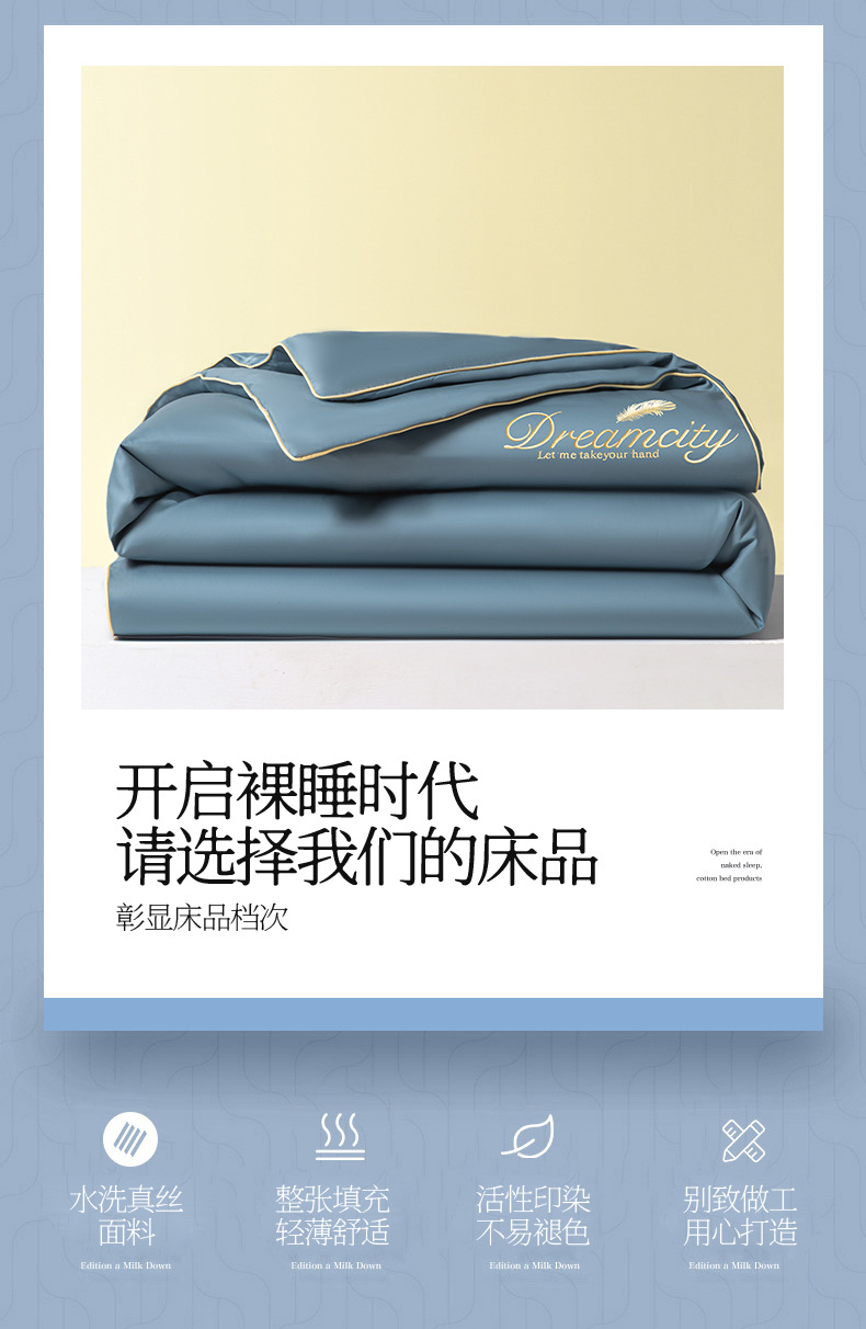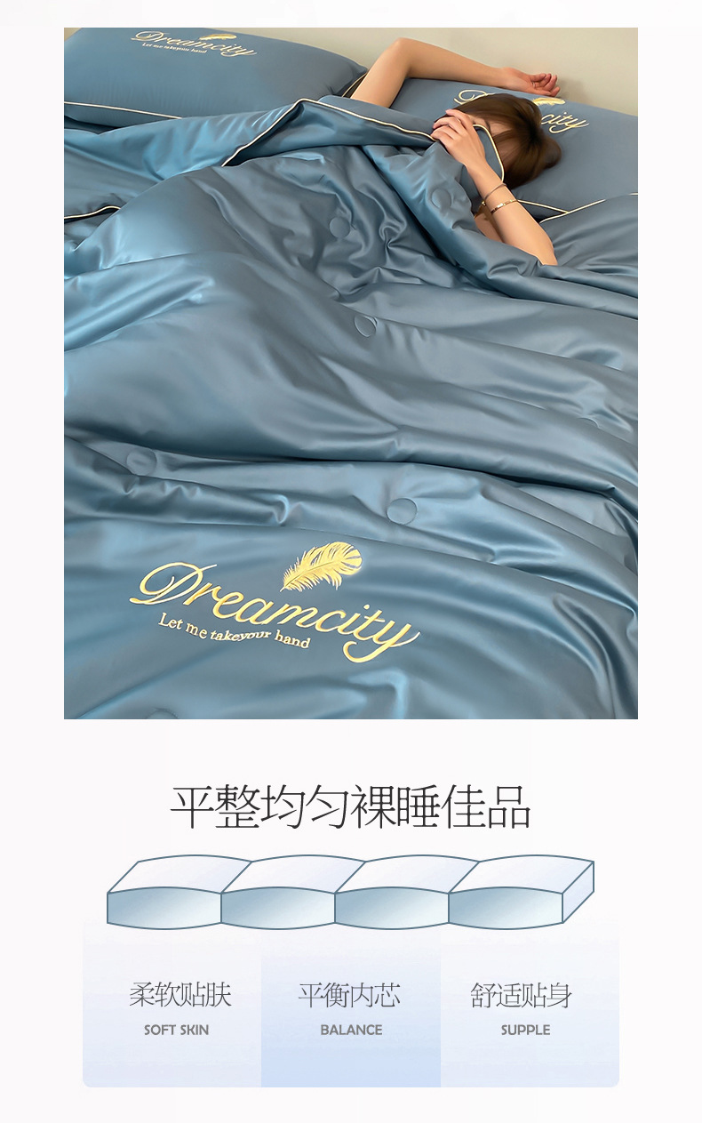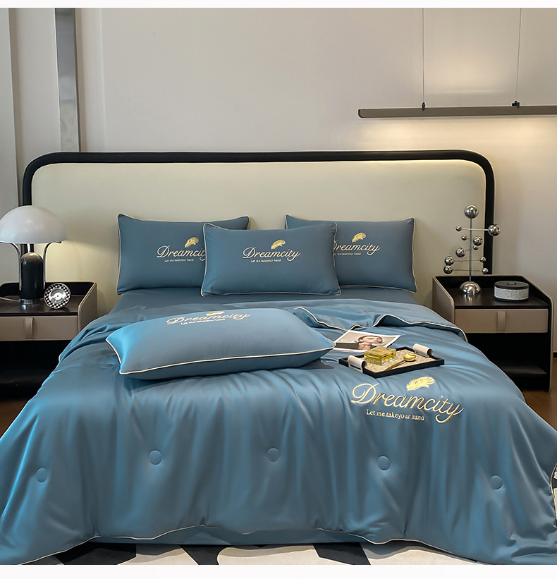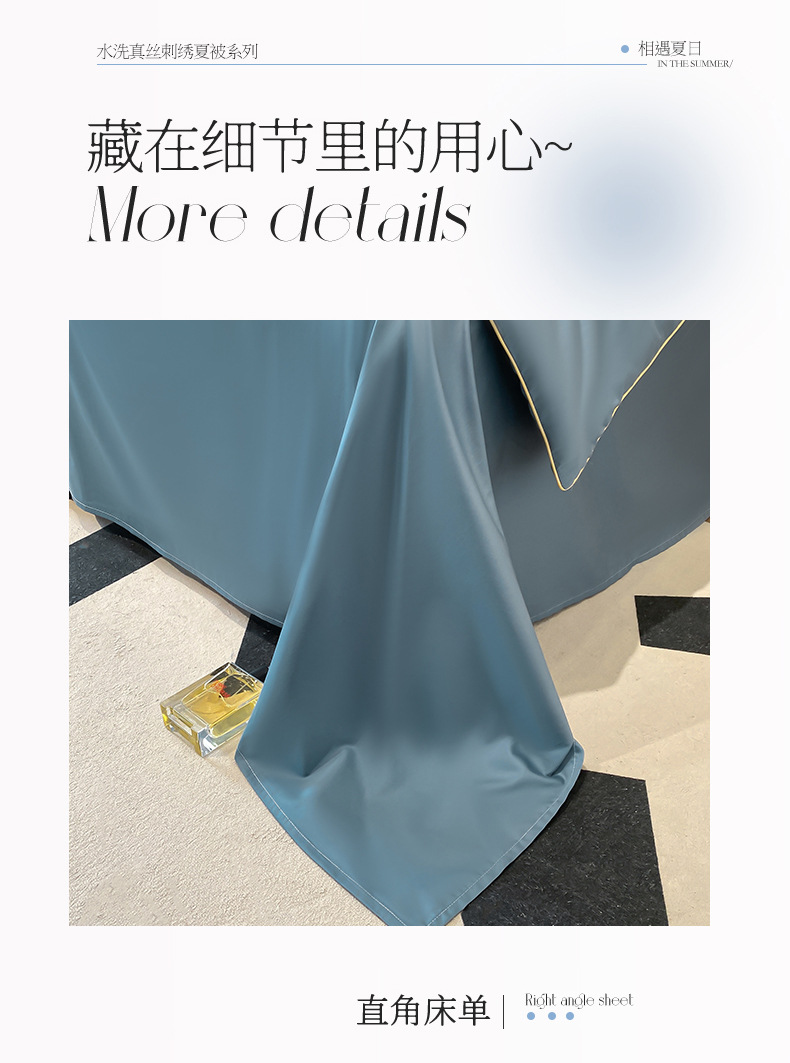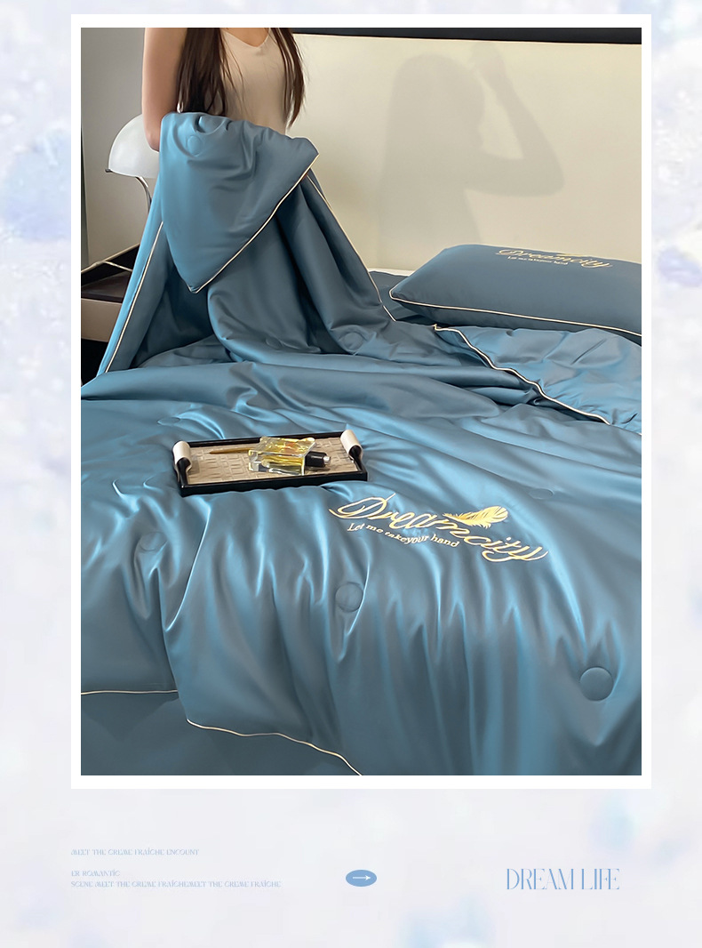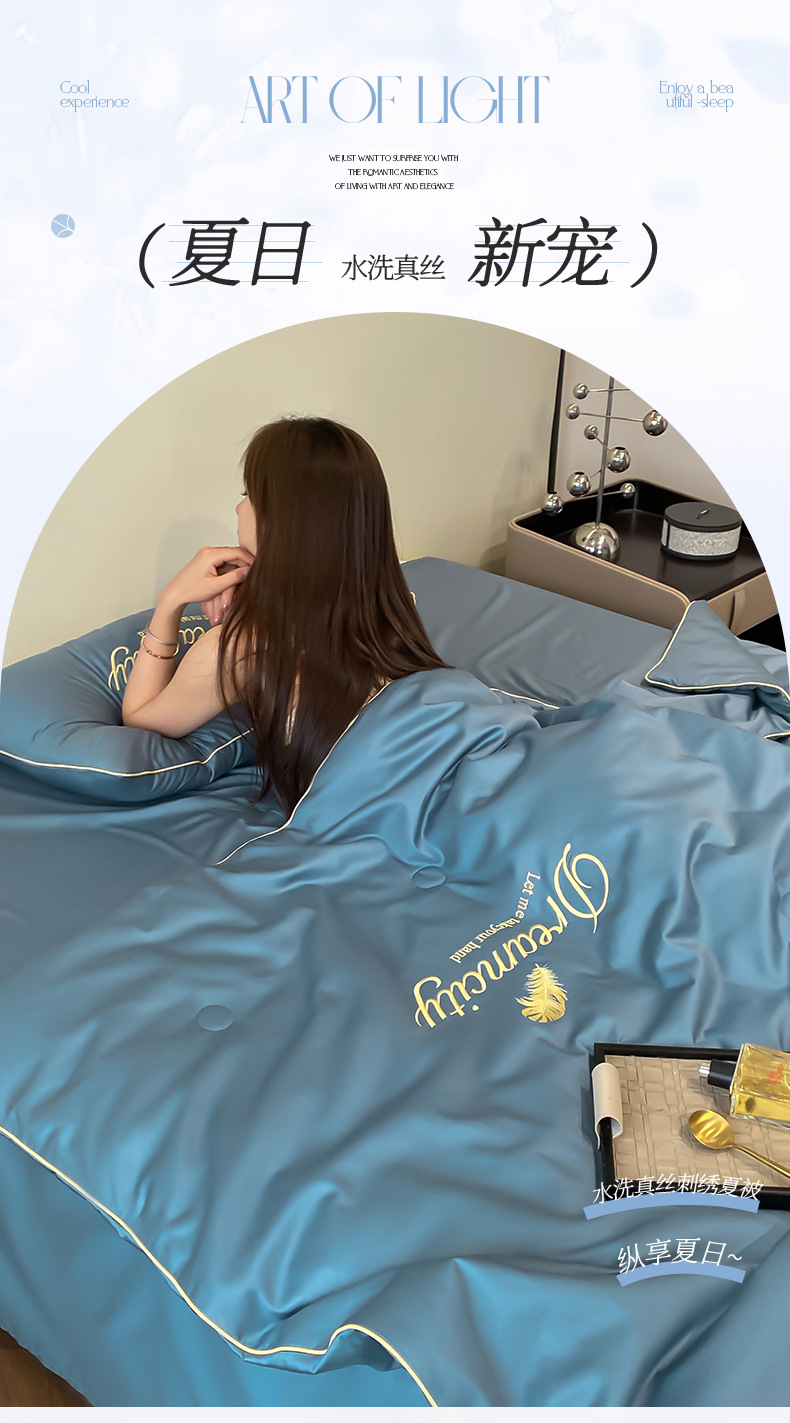 워시드 실크 아이스 실크 자수 텐셀 여름 이불 4종 세트 에어컨 이불-롤링 엣지 디자인 이불심 면 이불스토어 가기