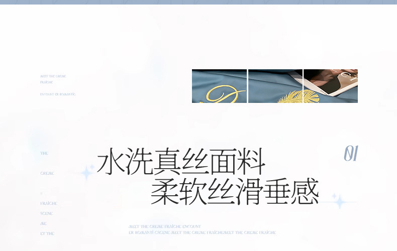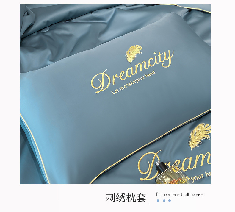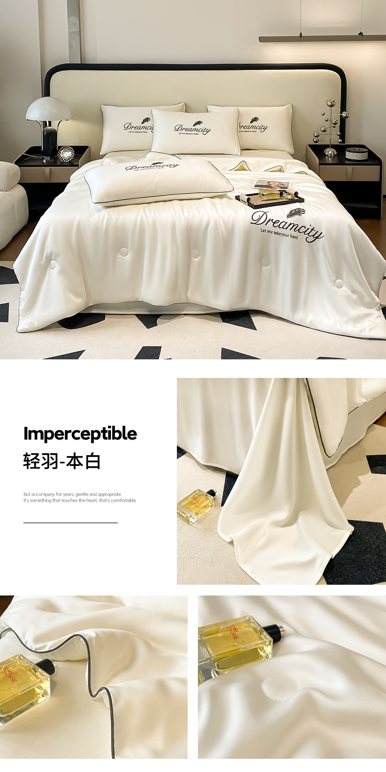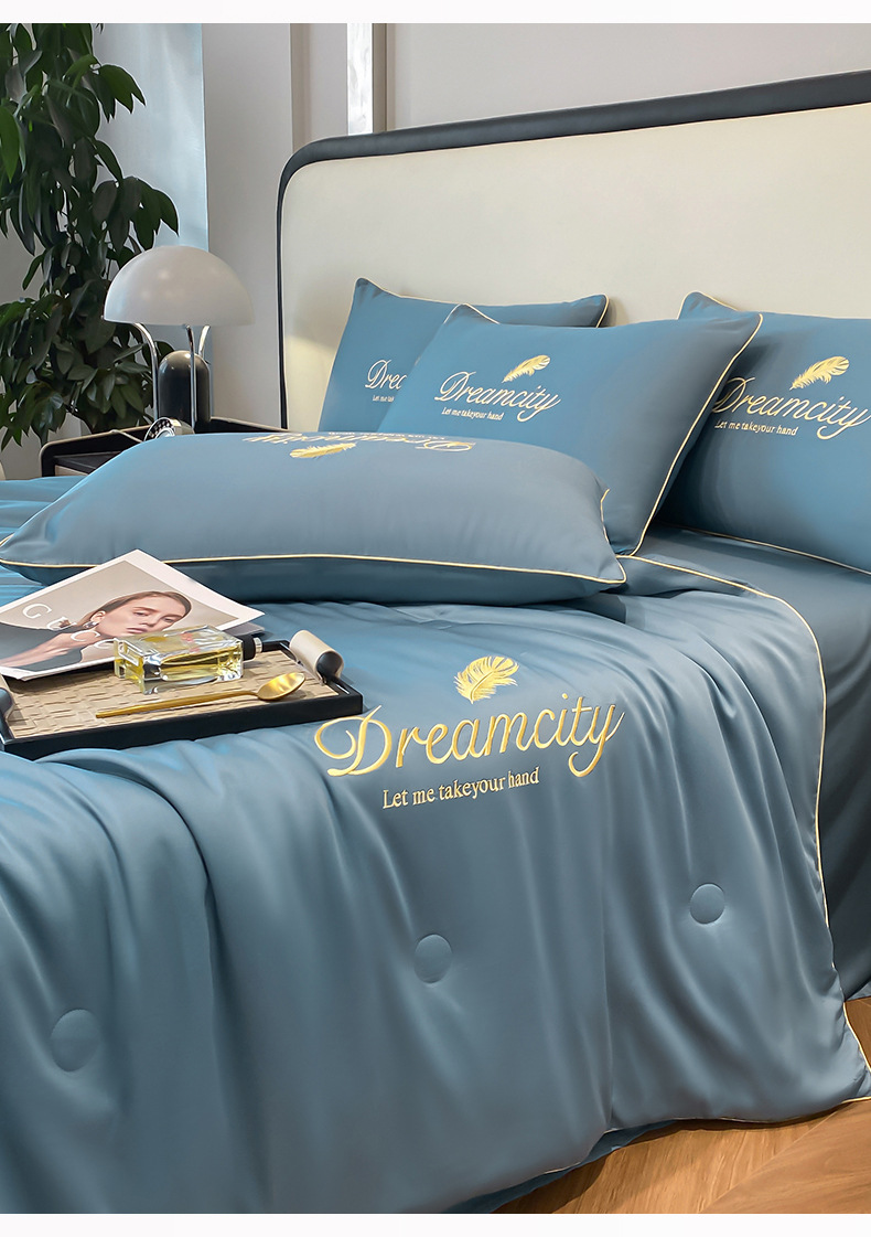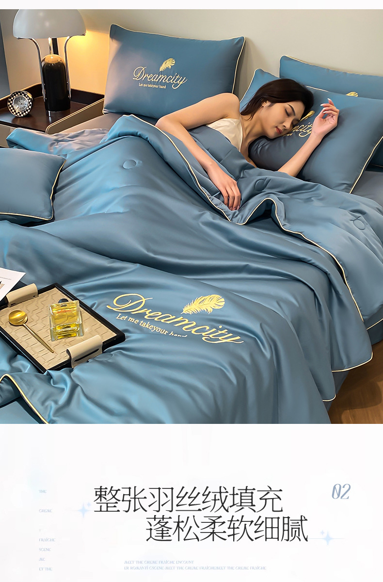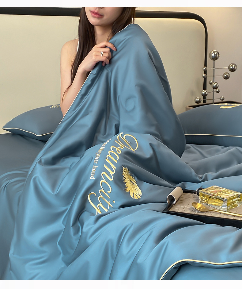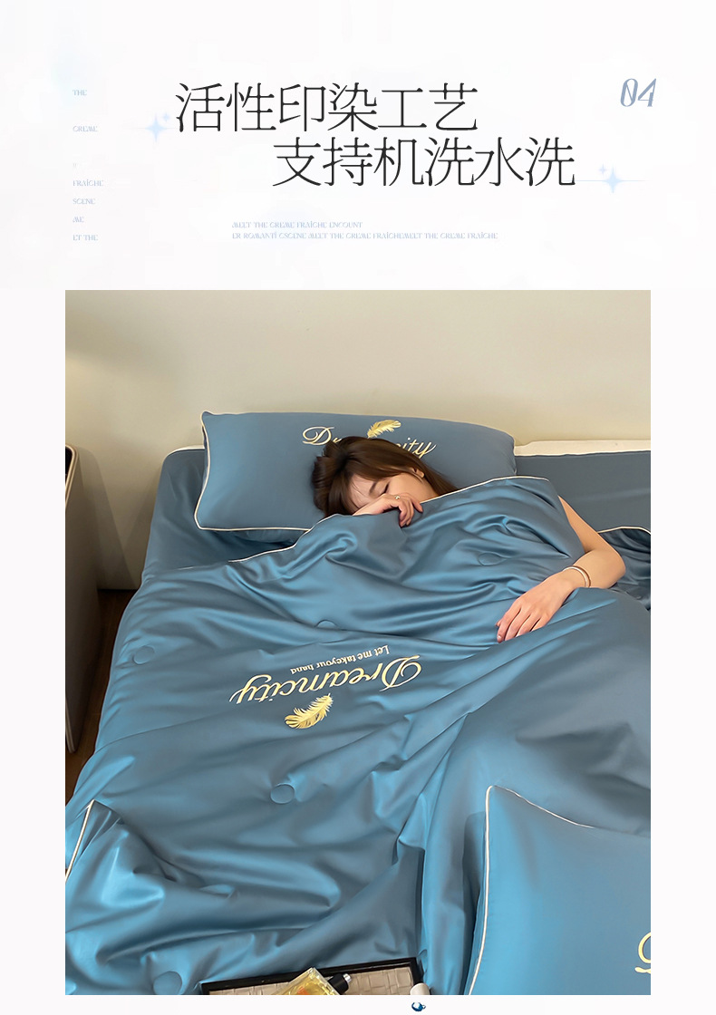 워시드 실크 아이스 실크 자수 텐셀 여름 이불 4종 세트 에어컨 이불-롤링 엣지 디자인 이불심 면 이불