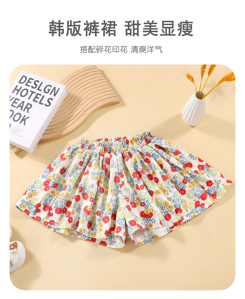 여름 새 어린이 바지 치마 소녀 넓은 다리 절반 반바지 아기 외부 착용 파자마 바지 소녀 치마 아동복스토어 가기