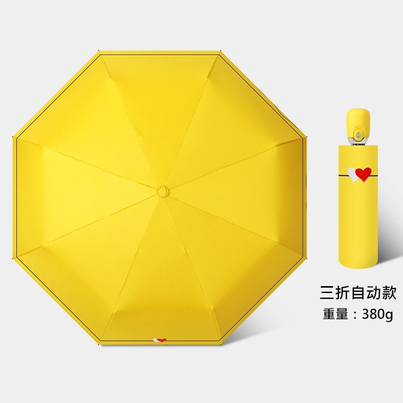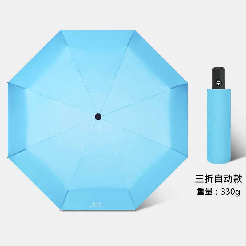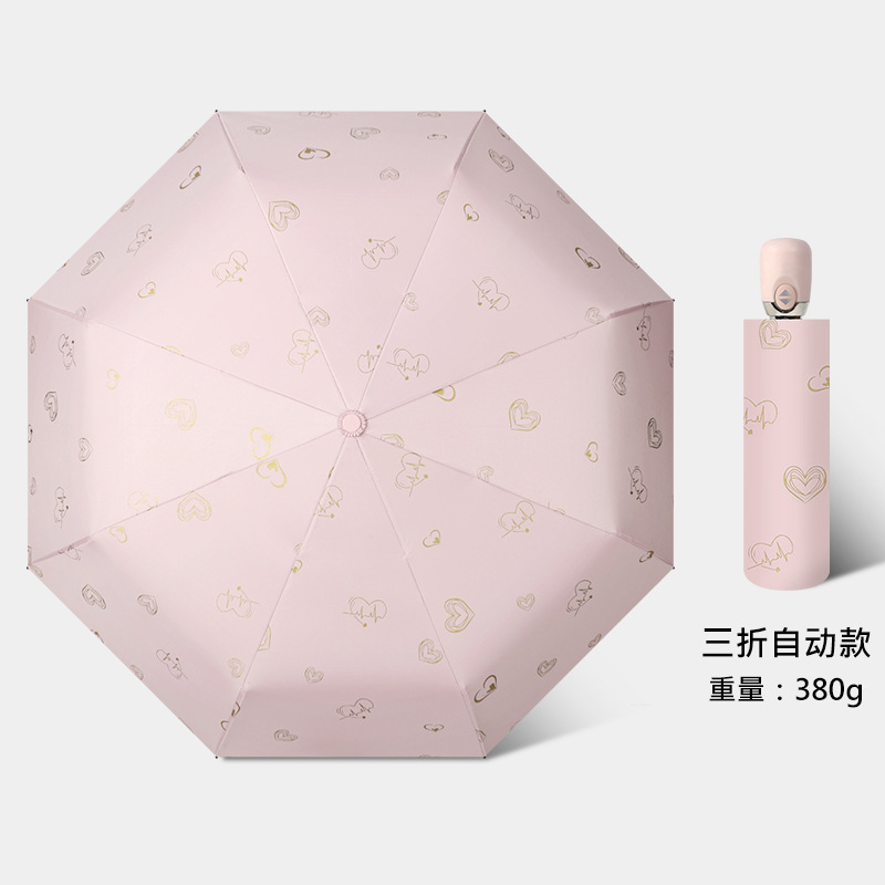 양산 우산 여성의 신선한 간단한 우산 자동 접히는 우산 검은 고무 태양 보호 우산 UV 보호 웨이브 포인트 우산