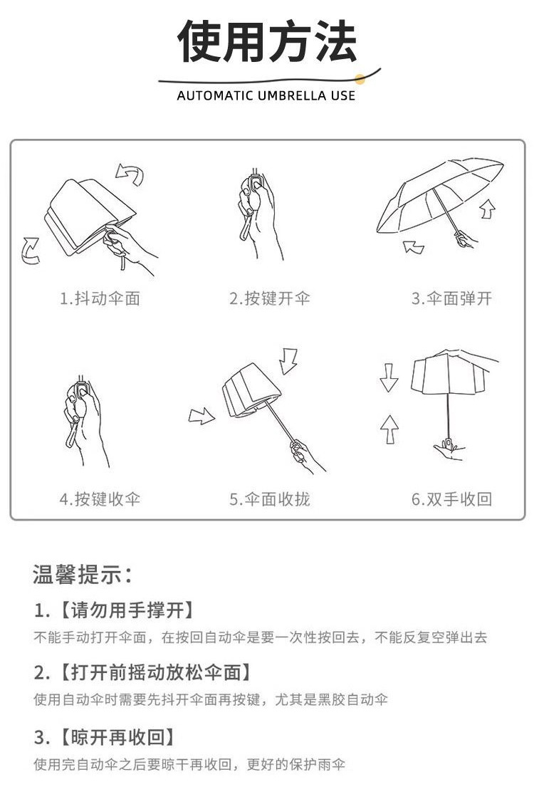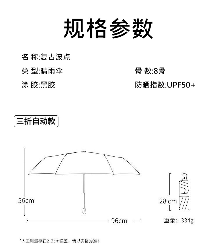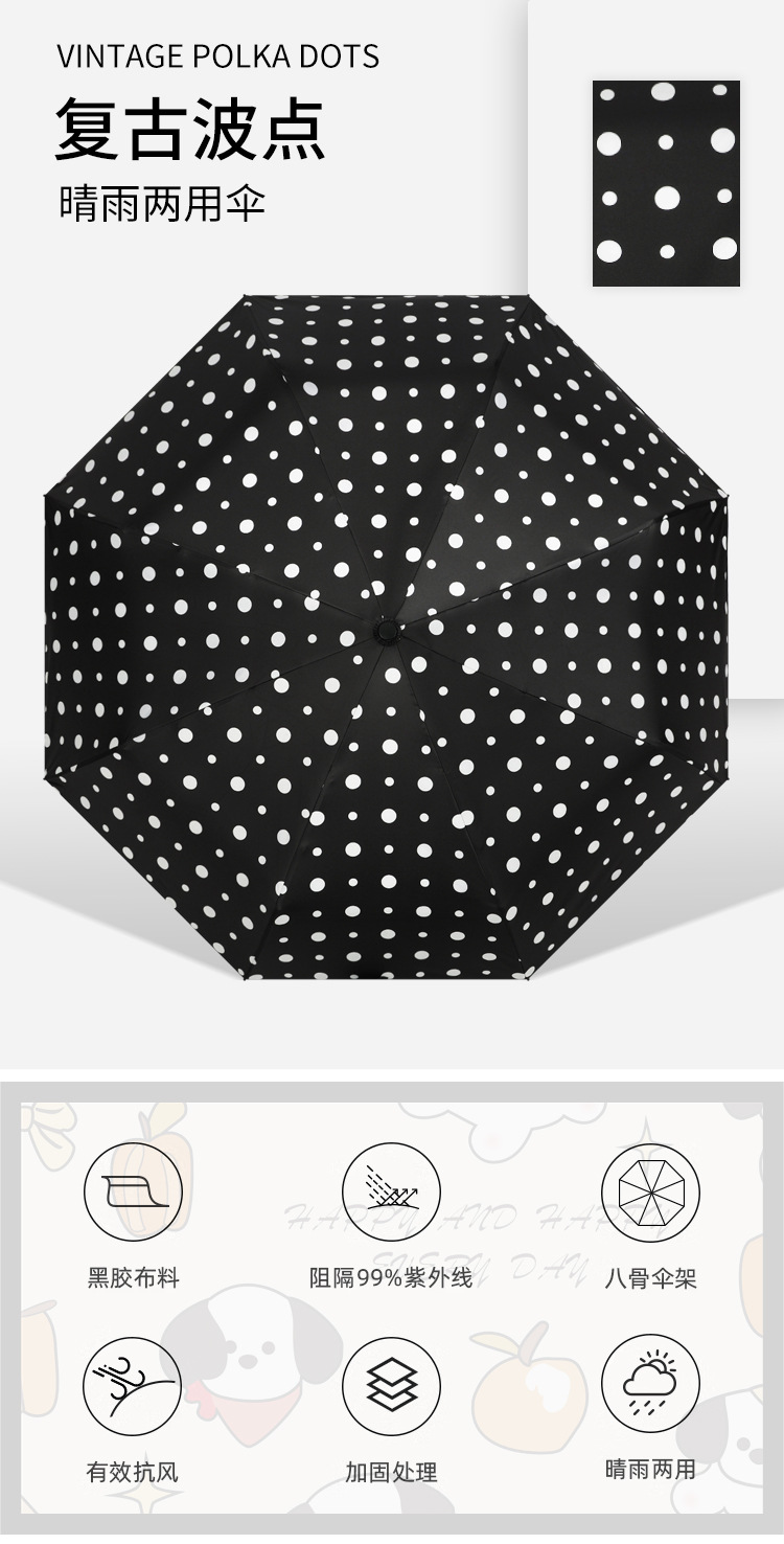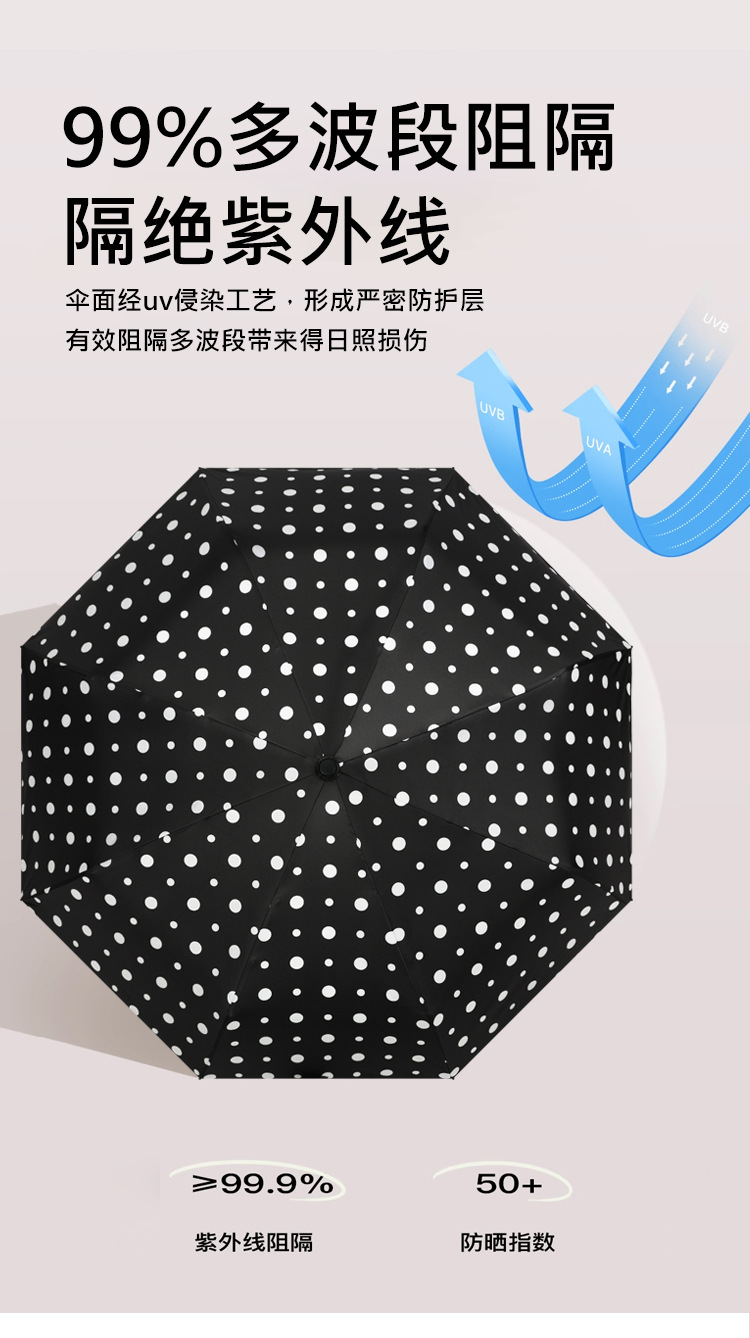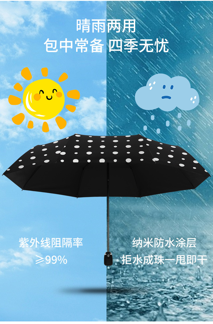 양산 우산 여성의 신선한 간단한 우산 자동 접히는 우산 검은 고무 태양 보호 우산 UV 보호 웨이브 포인트 우산스토어 가기
