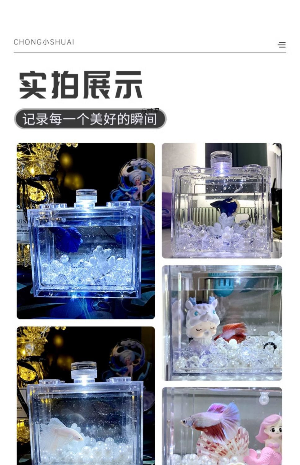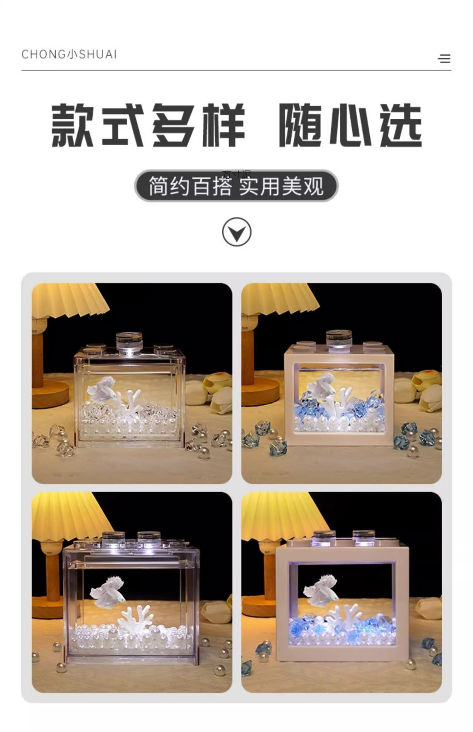 Dou 물고기 풍경 물고기 탱크 거실 홈 장식용 아크릴 빌딩 블록 상자 마이크로 풍경 물고기 탱크 작은 양동이 물고기 탱크 도매스토어 가기