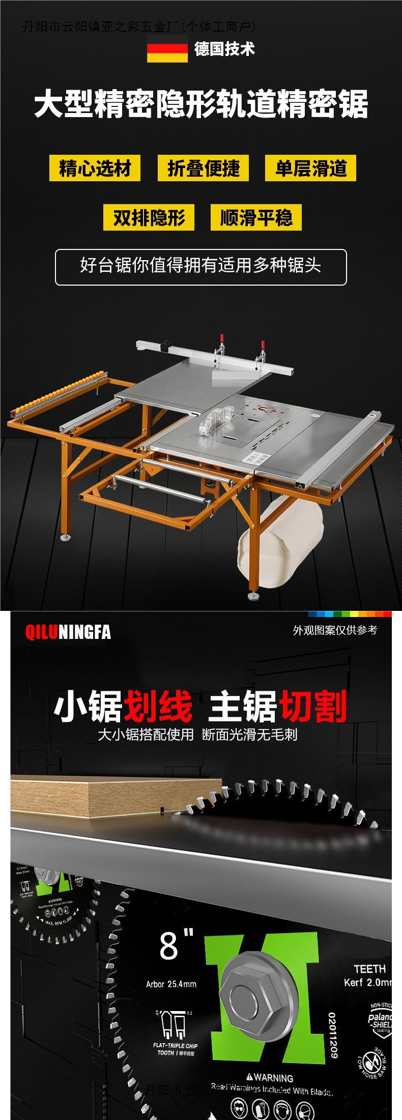 • 업그레이드된 넓고 두꺼워진 하이 슬라이딩 테이블 톱 + 조용하고 먼지가 없는 더블 톱 + 공 기계 + 칼