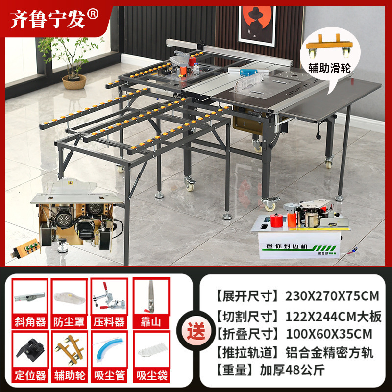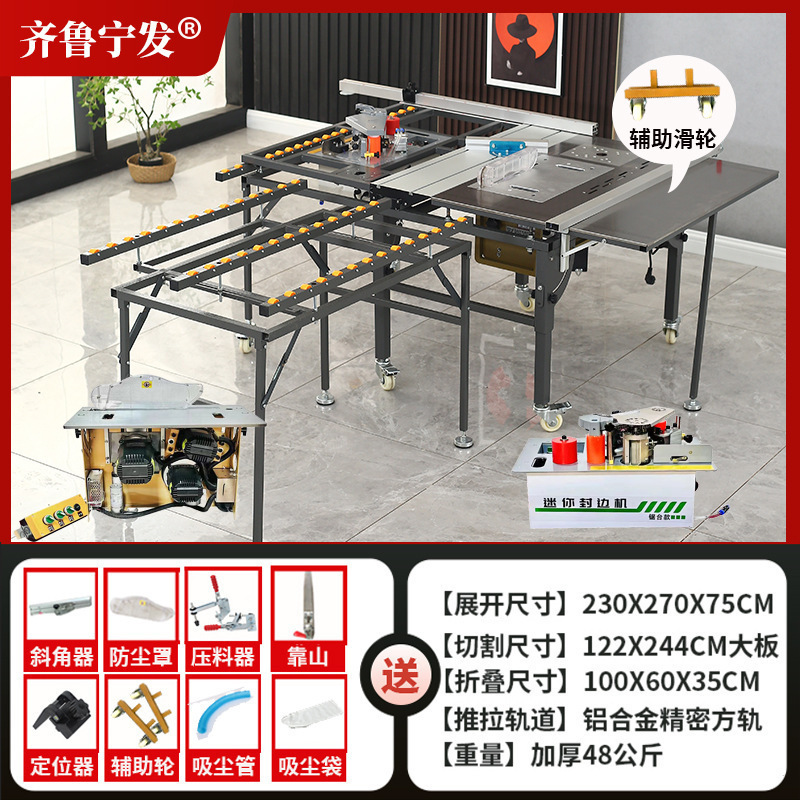 • 업그레이드된 넓고 두꺼워진 하이 슬라이딩 테이블 톱 + 먼지 없는 더블 톱 + 공 기계 + 엣지 밴딩 기계 +