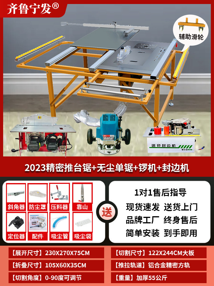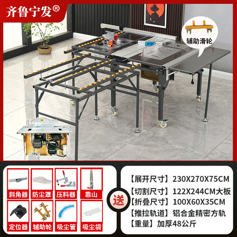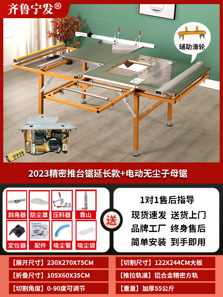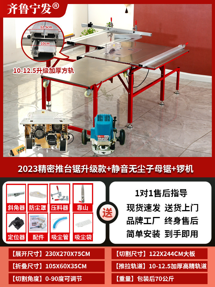 • 업그레이드된 넓고 두꺼워진 하이 슬라이딩 테이블 톱 + 전기 먼지 없는 더블 톱 + 공 기계 + 칼
