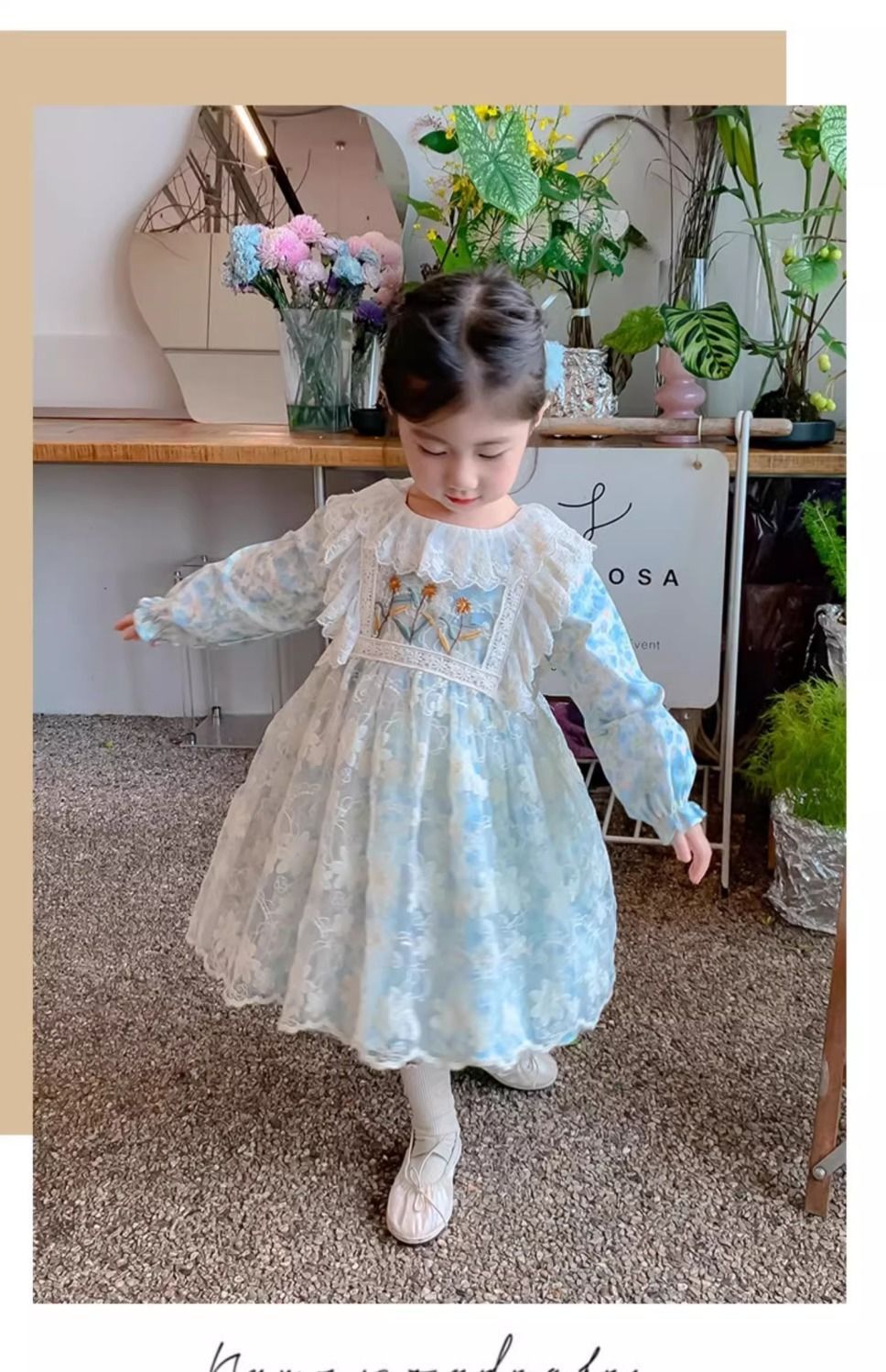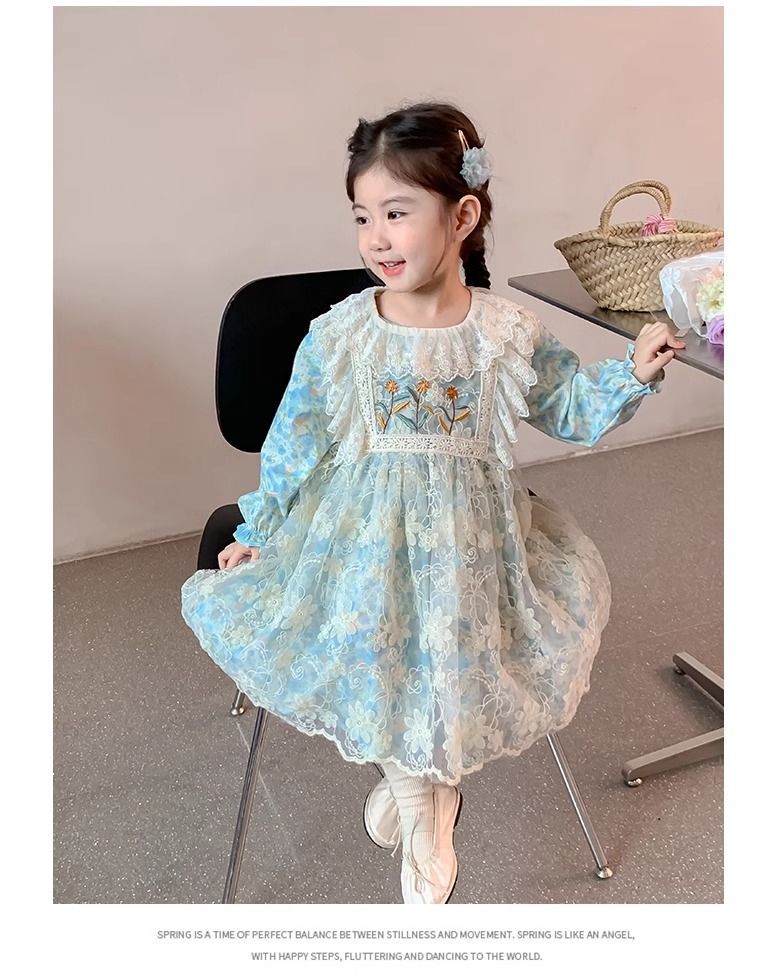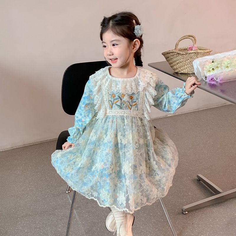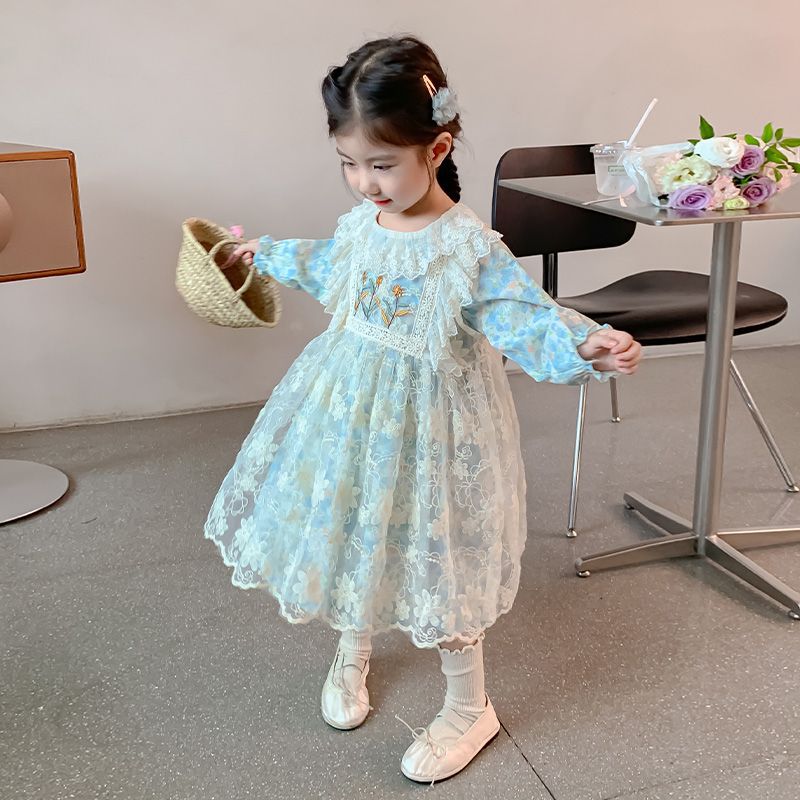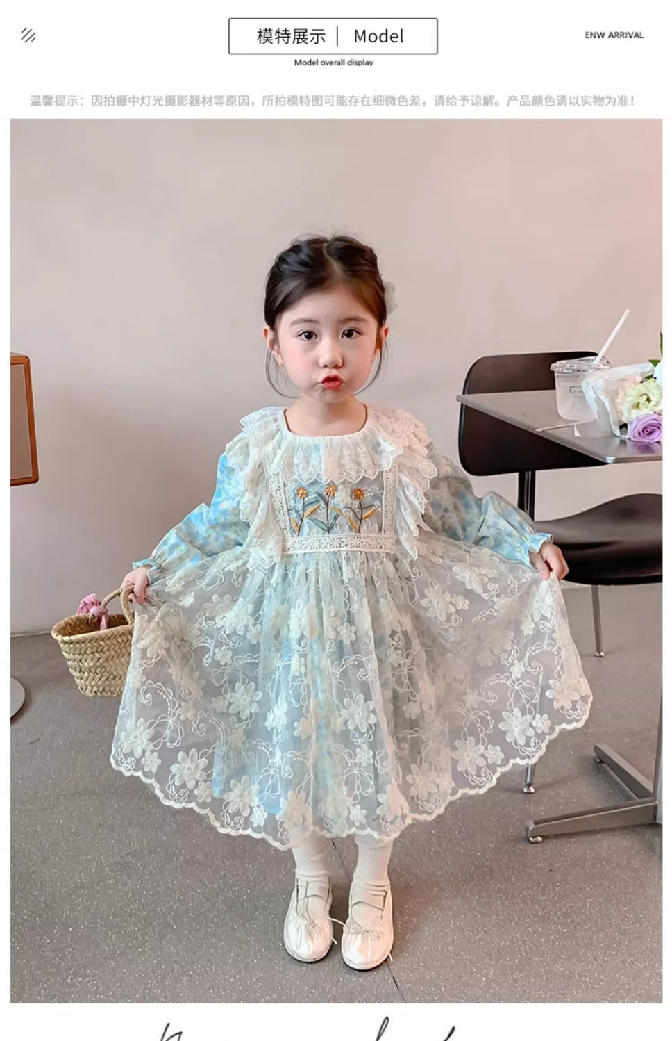 소녀 원피스 봄 가을 어린이 꽃 원피스 2025 새로운 스타일 레이스 공주 원피스 아기 봄 원피스