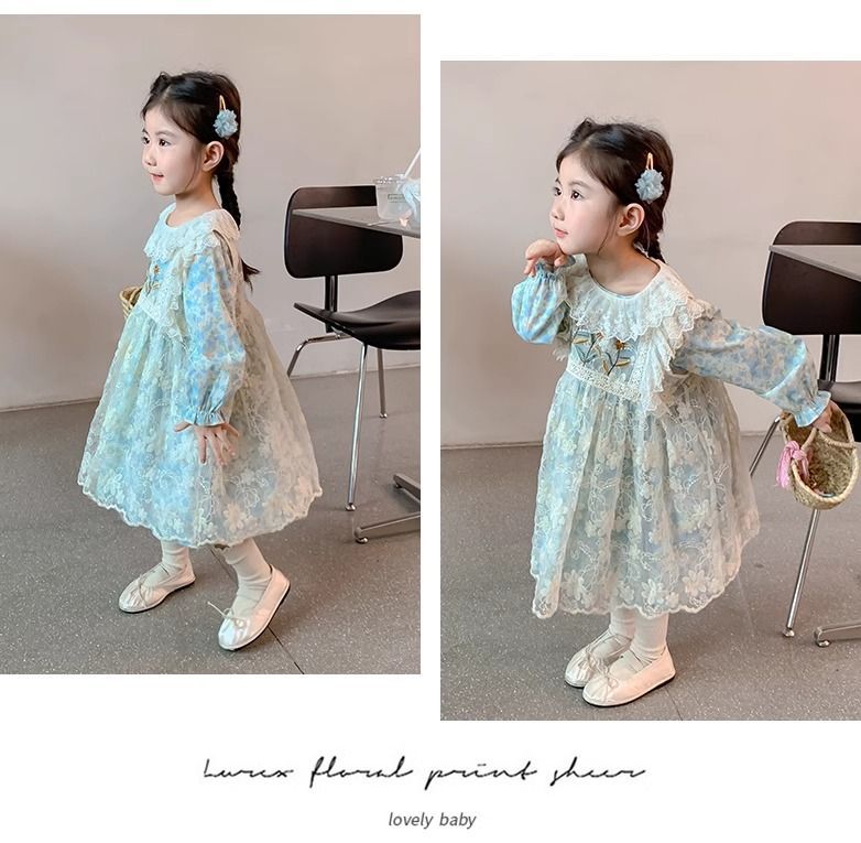 소녀 원피스 봄 가을 어린이 꽃 원피스 2025 새로운 스타일 레이스 공주 원피스 아기 봄 원피스스토어 가기