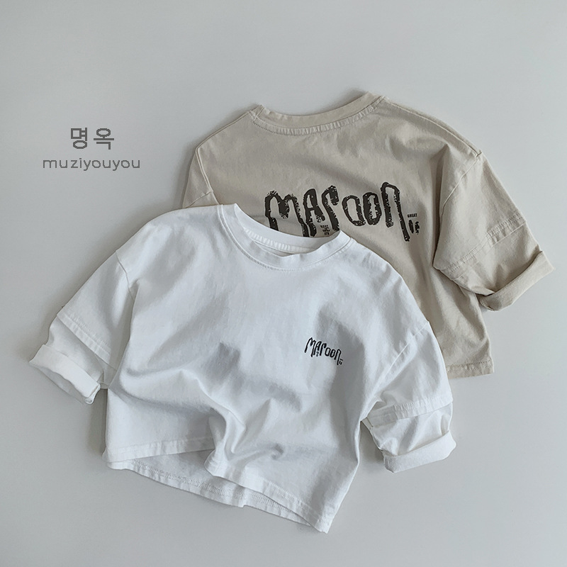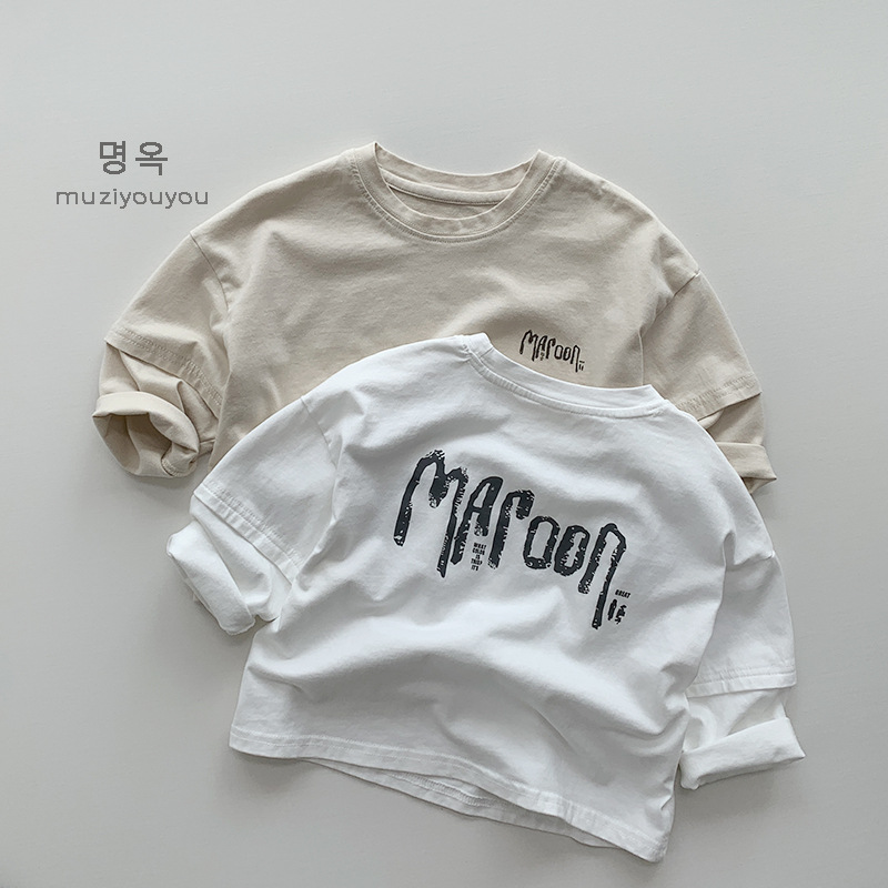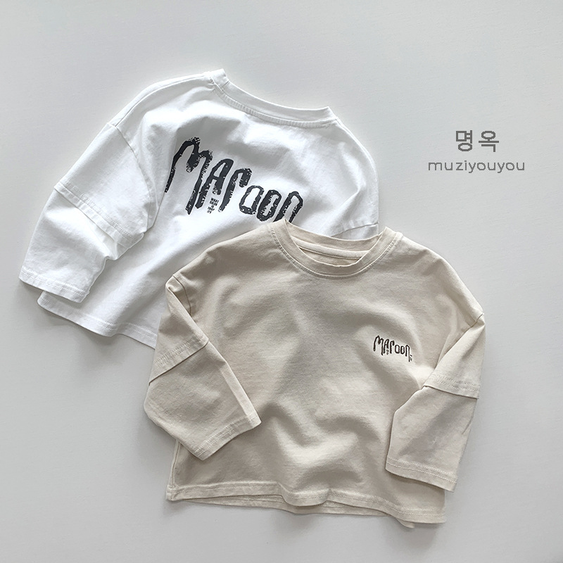 어린이 긴팔 티셔츠 25 새 소년 소녀 일본식 독특한 퓨어 코튼 올매치 탑 후주 질리 아동복