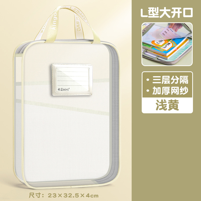 -L 형 주제 분류 가방 휴대용 투명 문서 가방 지퍼 메쉬 시험을 위해 책 가방을 들고 큰 오프닝 학생