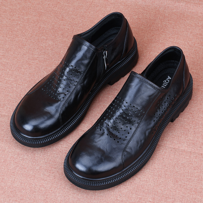 정품 가죽 중공 남성 신발 여름 통기성 사업 캐주얼 한 가죽 신발 남성용 탑 레이어 Cowhide 소프트 하단 부드러운 가죽 싱글 레이어 신발스토어 가기