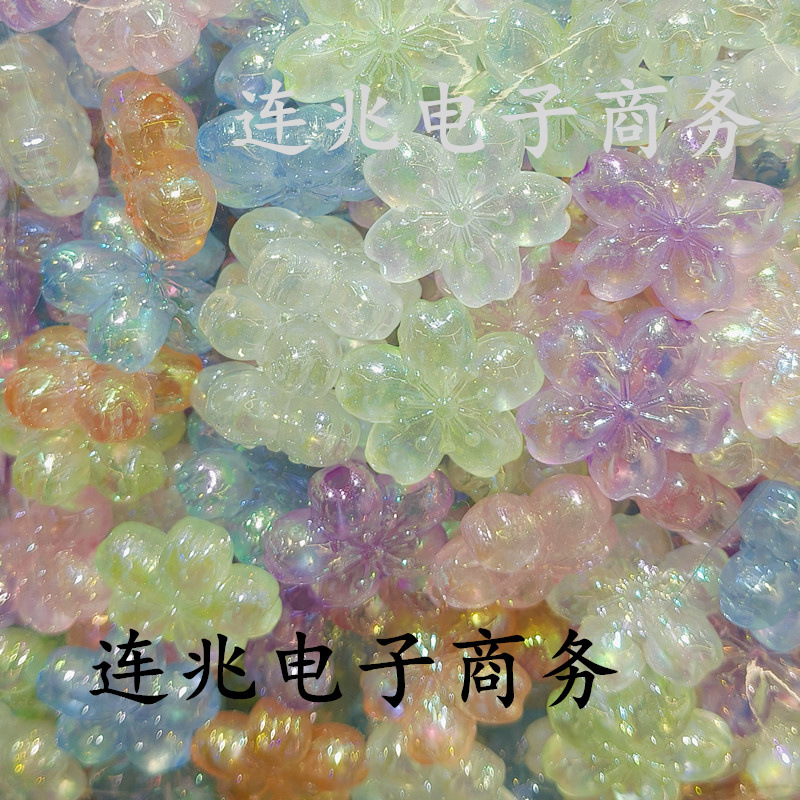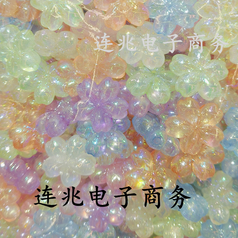 人鱼姬镀彩樱花竖孔尺寸约25MM,一包200个,有现货可以很快发货,没有定做单款单色要几千起