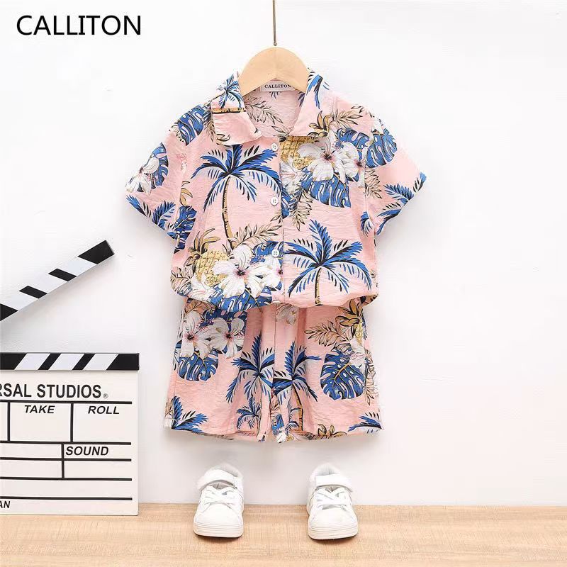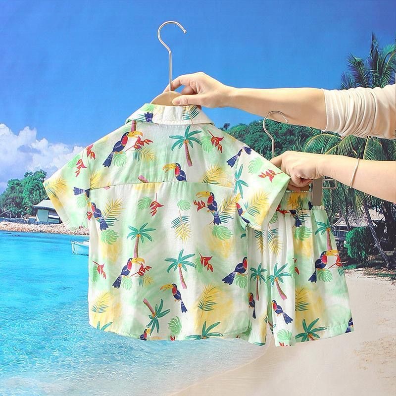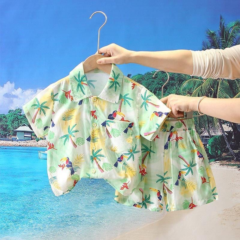 개인화 된 소년 여름 옷 세트 2025 새로운 아기의 해변 휴가 옷 어린이 비치 옷 투피스 셔츠