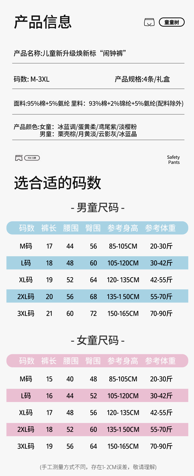통통 나무 새 회춘 표준 어린이 알람 시계 바지 소년 소녀를위한 아기 면 클립 PP 높은 탄성 4 코너 팬티