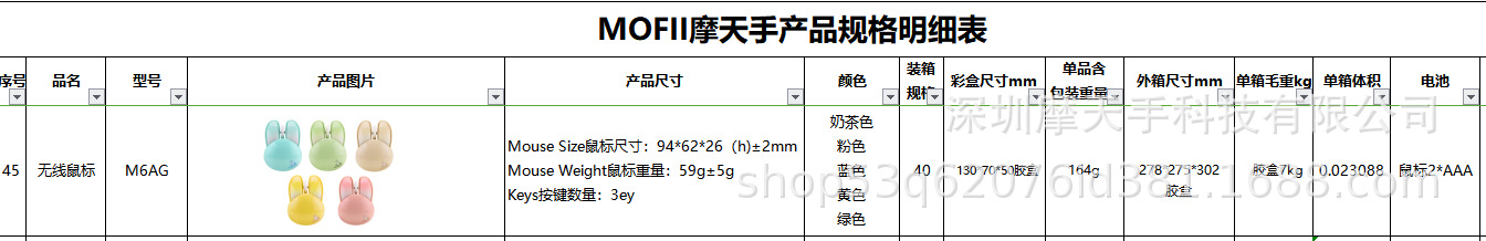 Mofii 마천루 M6 토끼 마우스 사무실 마우스 라이트 톤 미니 무선 마우스 공장 뜨거운 판매 귀여운 토끼