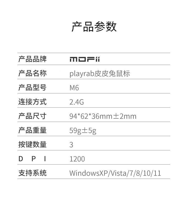 Mofii 마천루 M6 토끼 마우스 사무실 마우스 라이트 톤 미니 무선 마우스 공장 뜨거운 판매 귀여운 토끼스토어 가기