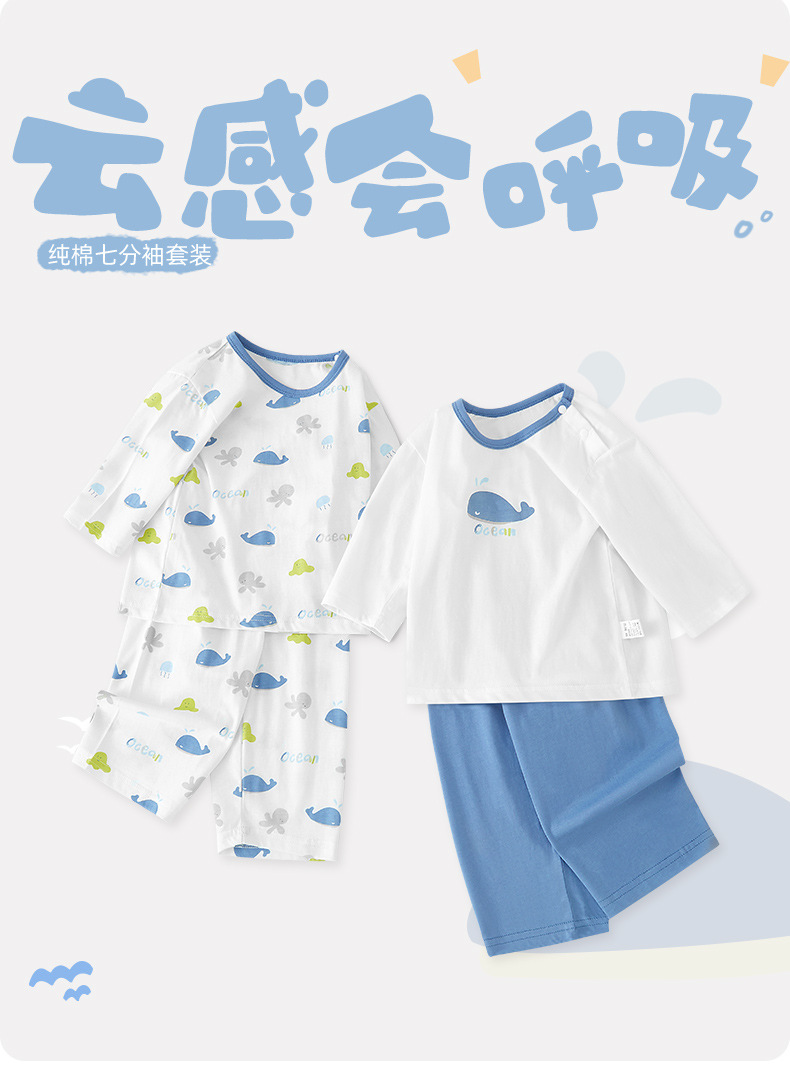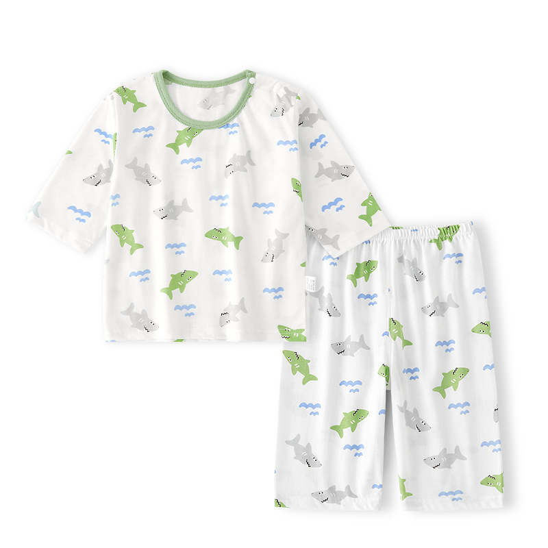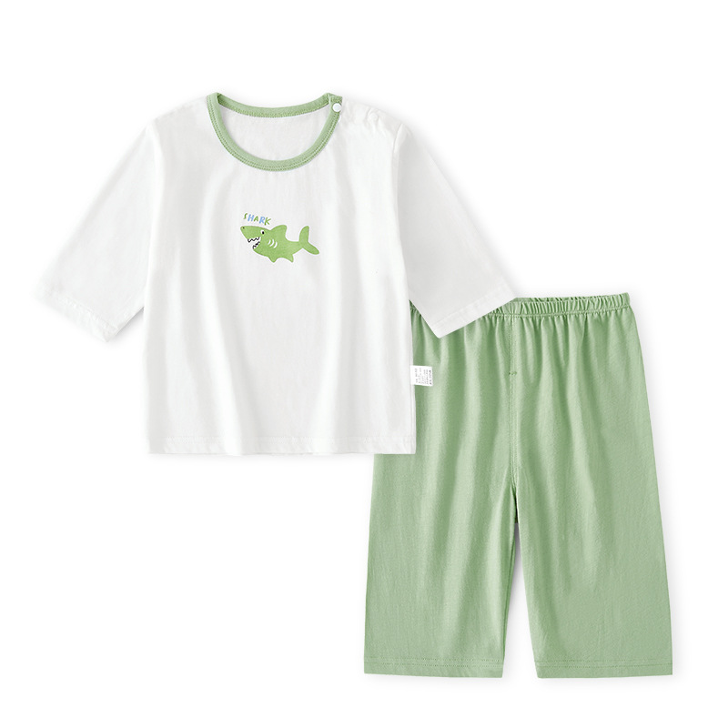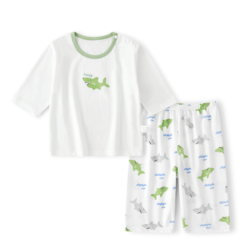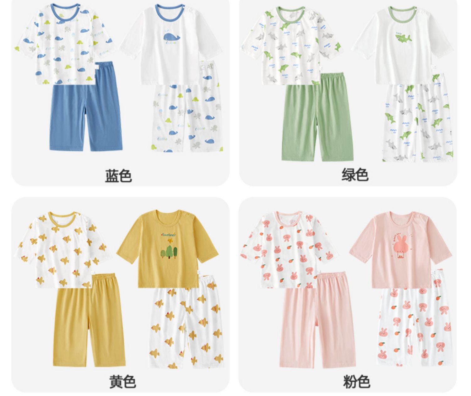 남학생 면 잠옷 여름 2025 새로운 어린이 가정 옷 7 점 소매 얇은 아기 에어컨 의류 세트스토어 가기