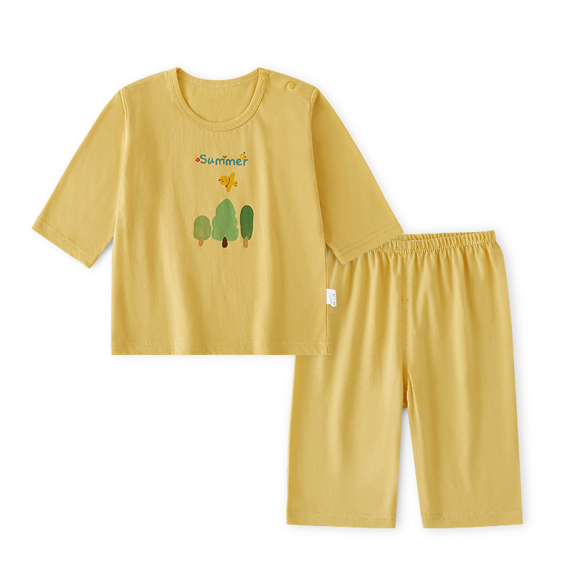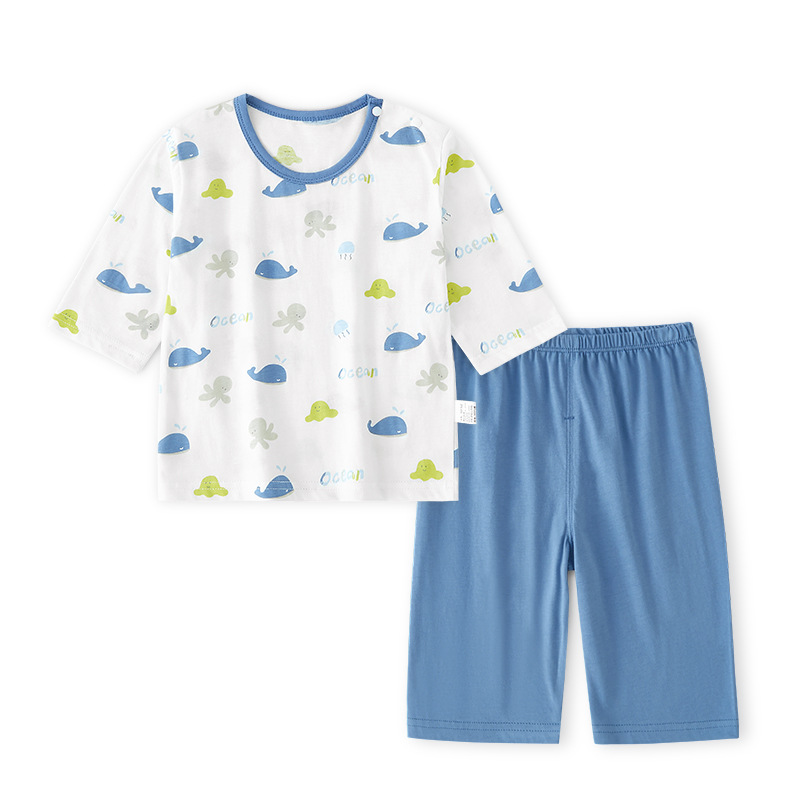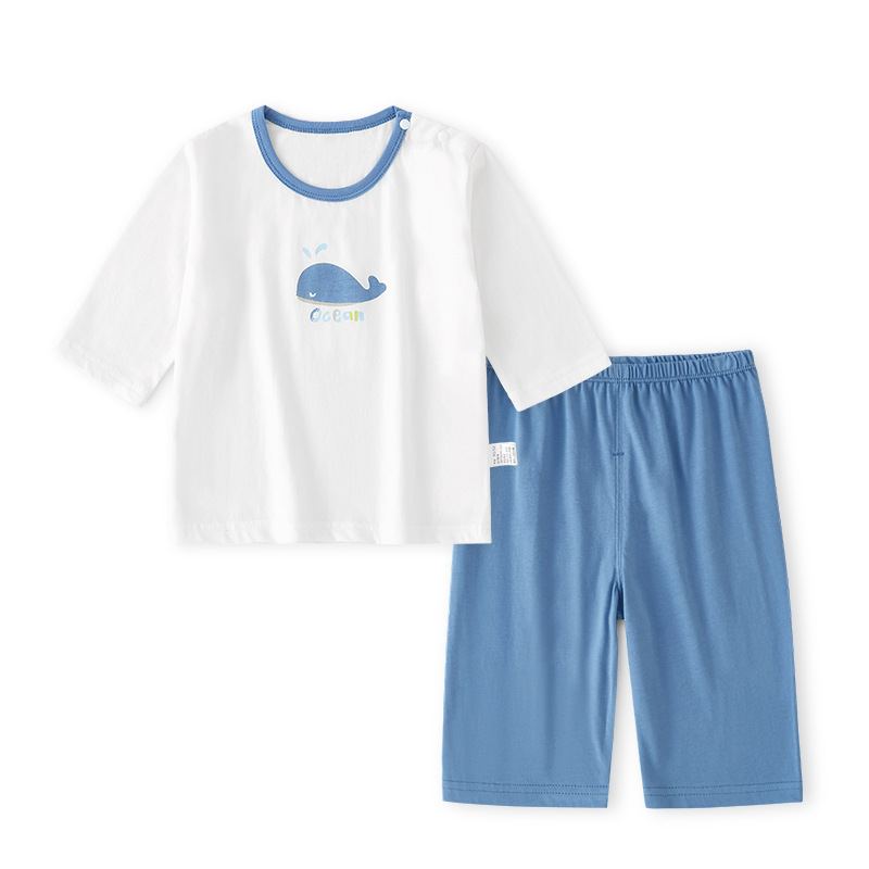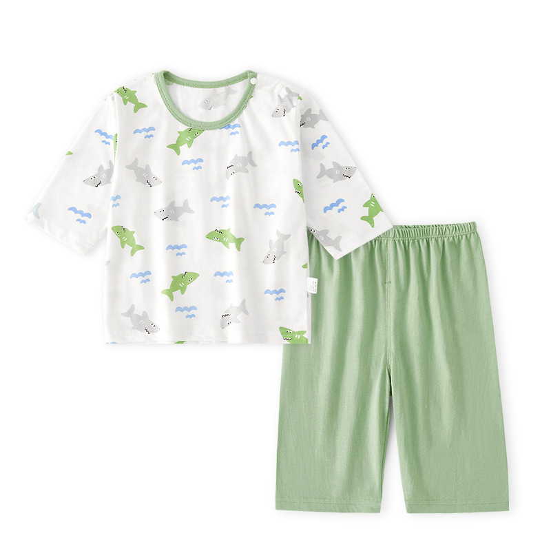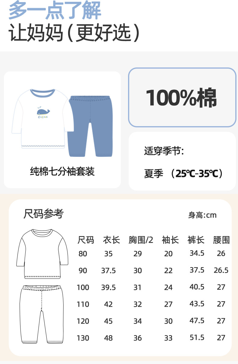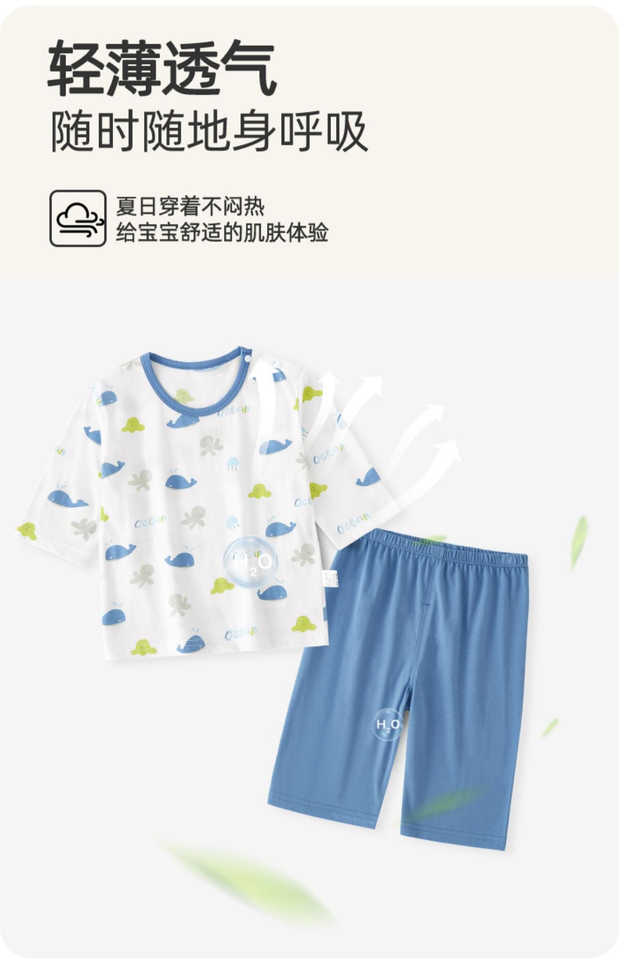 남학생 면 잠옷 여름 2025 새로운 어린이 가정 옷 7 점 소매 얇은 아기 에어컨 의류 세트스토어 가기