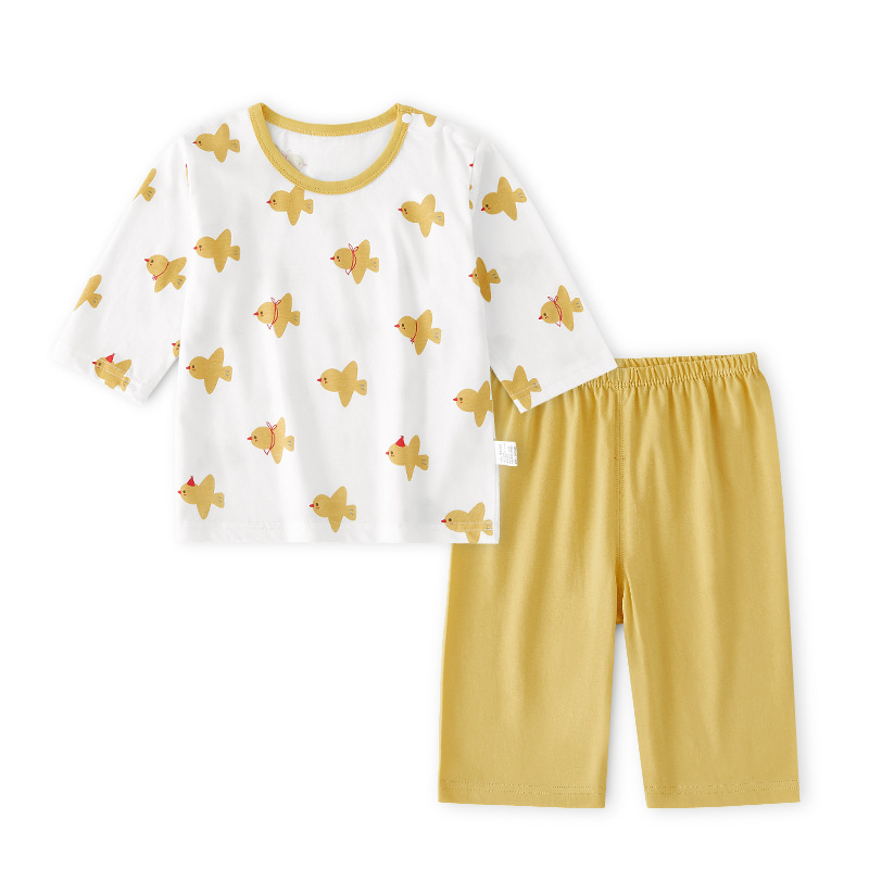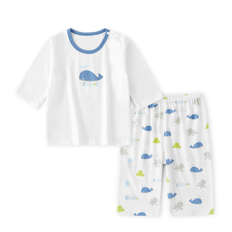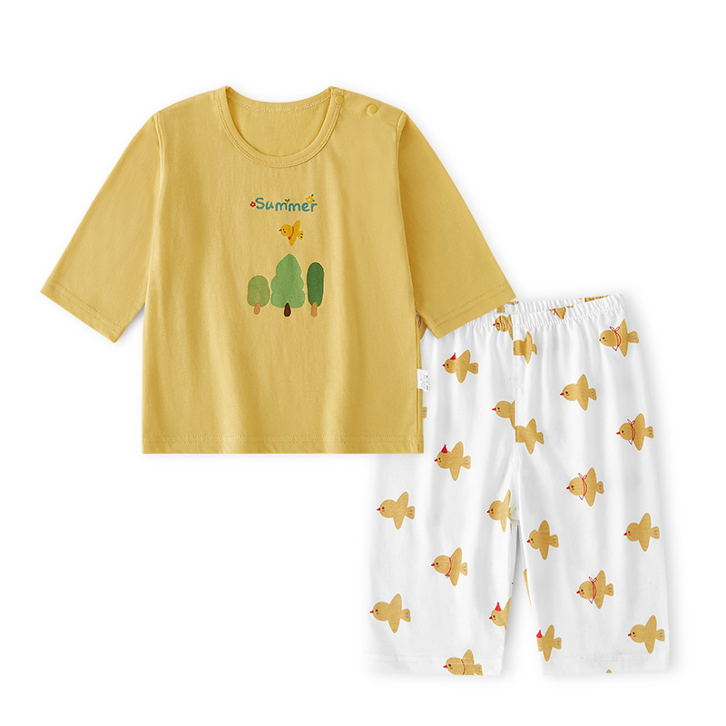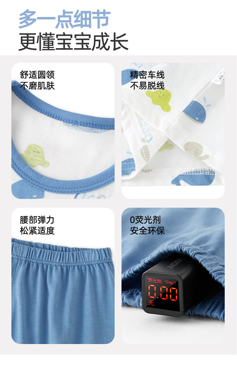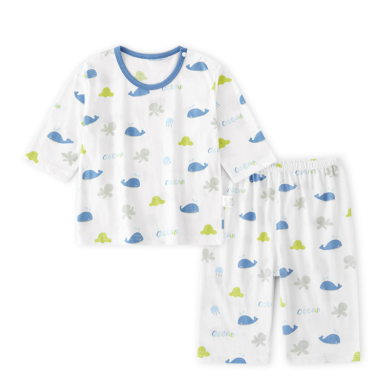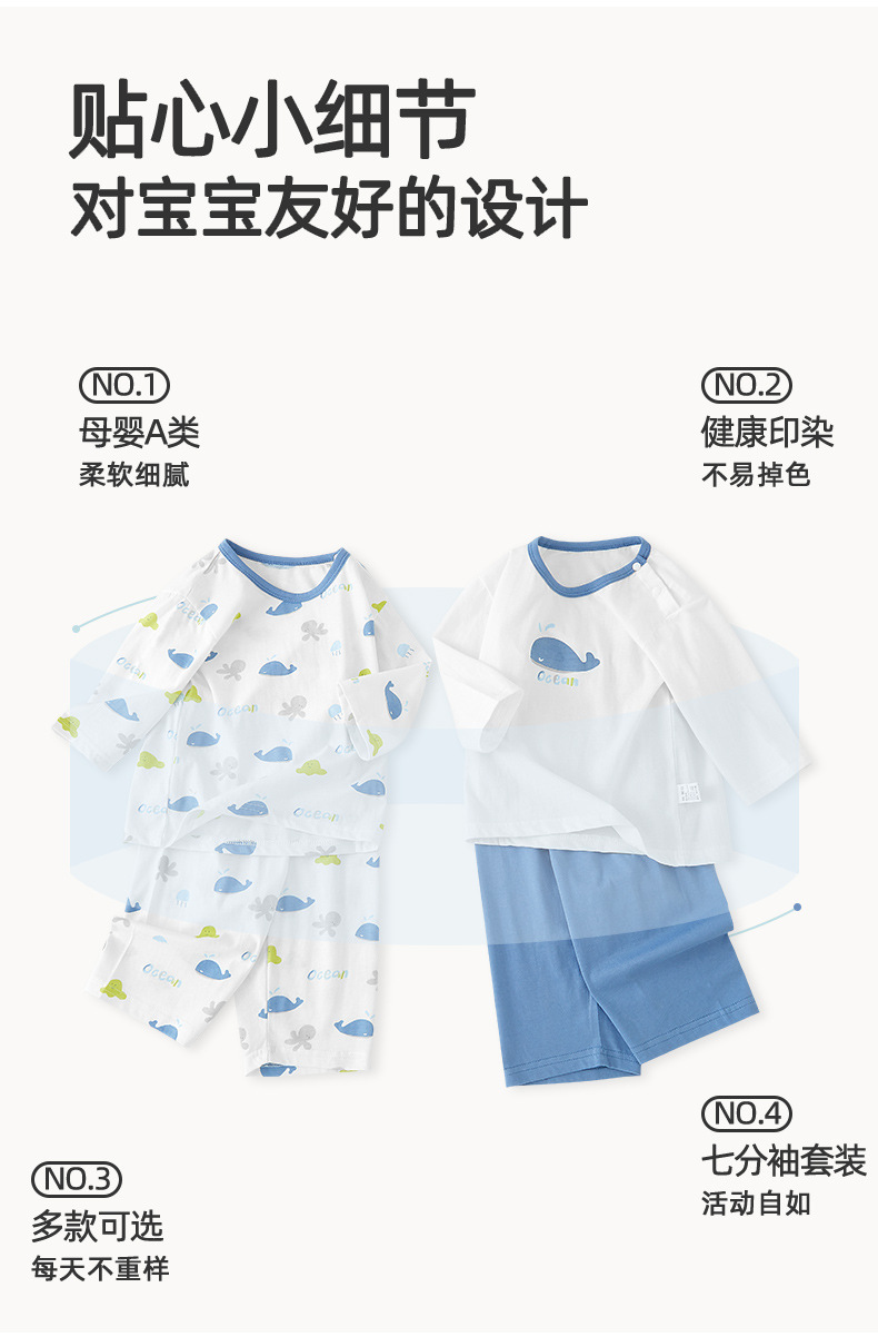 남학생 면 잠옷 여름 2025 새로운 어린이 가정 옷 7 점 소매 얇은 아기 에어컨 의류 세트스토어 가기