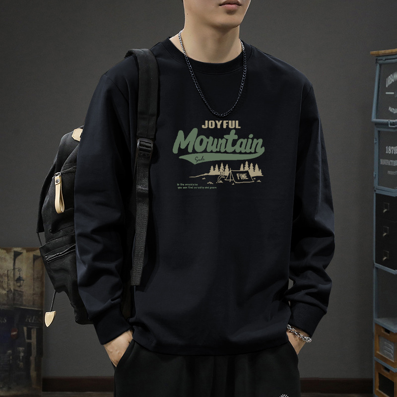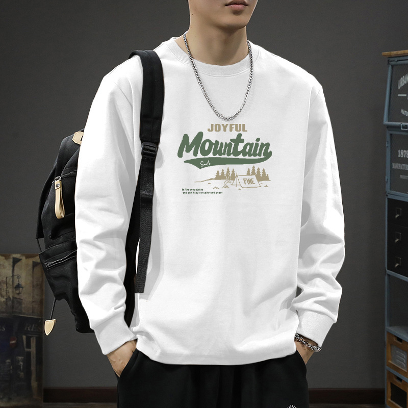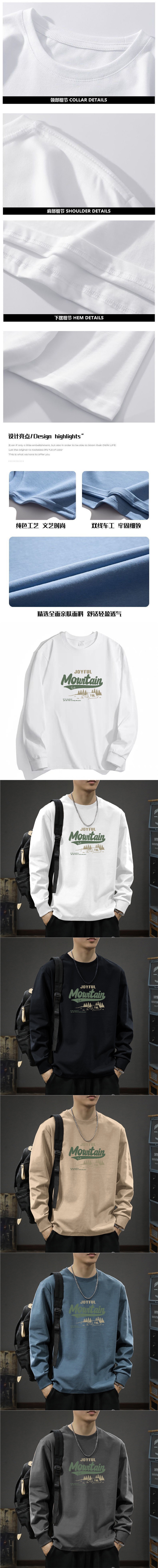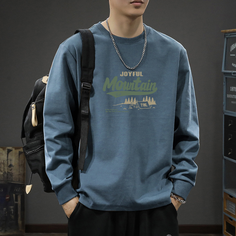 봄 2024 캐주얼 긴팔 티셔츠 남성용 코튼 심플한베이스 셔츠 무거운면 라운드 칼라 조수 도매스토어 가기